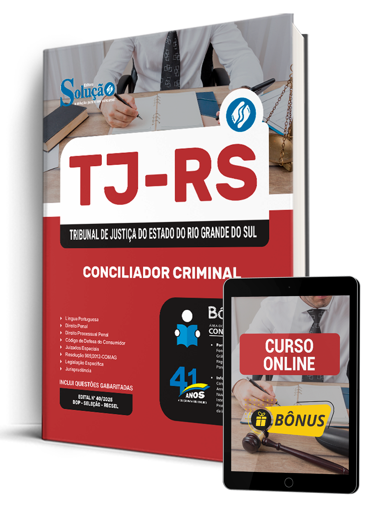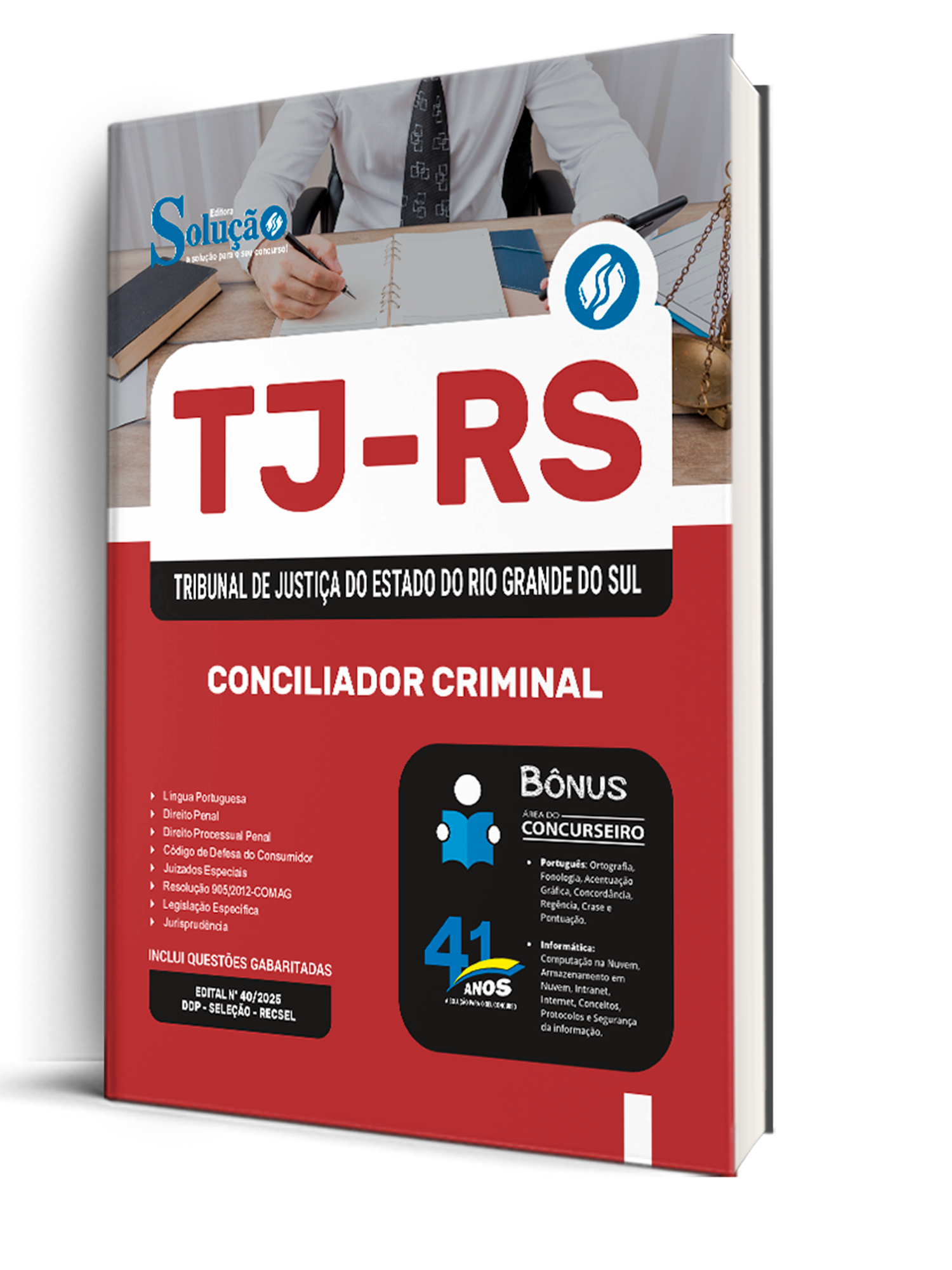 A Apostila Tribunal de Justiça do Rio Grande do Sul 2025 - Conciliador Criminal foi organizada para proporcionar um melhor rendimento na sua preparação, abordando cada conteúdo de forma objetiva e direcionada. Estude para o Concurso da Tribunal de Justiça do Rio Grande do Sul 2025 com um material de acordo com o Edital oficial para o cargo de Conciliador Criminal.