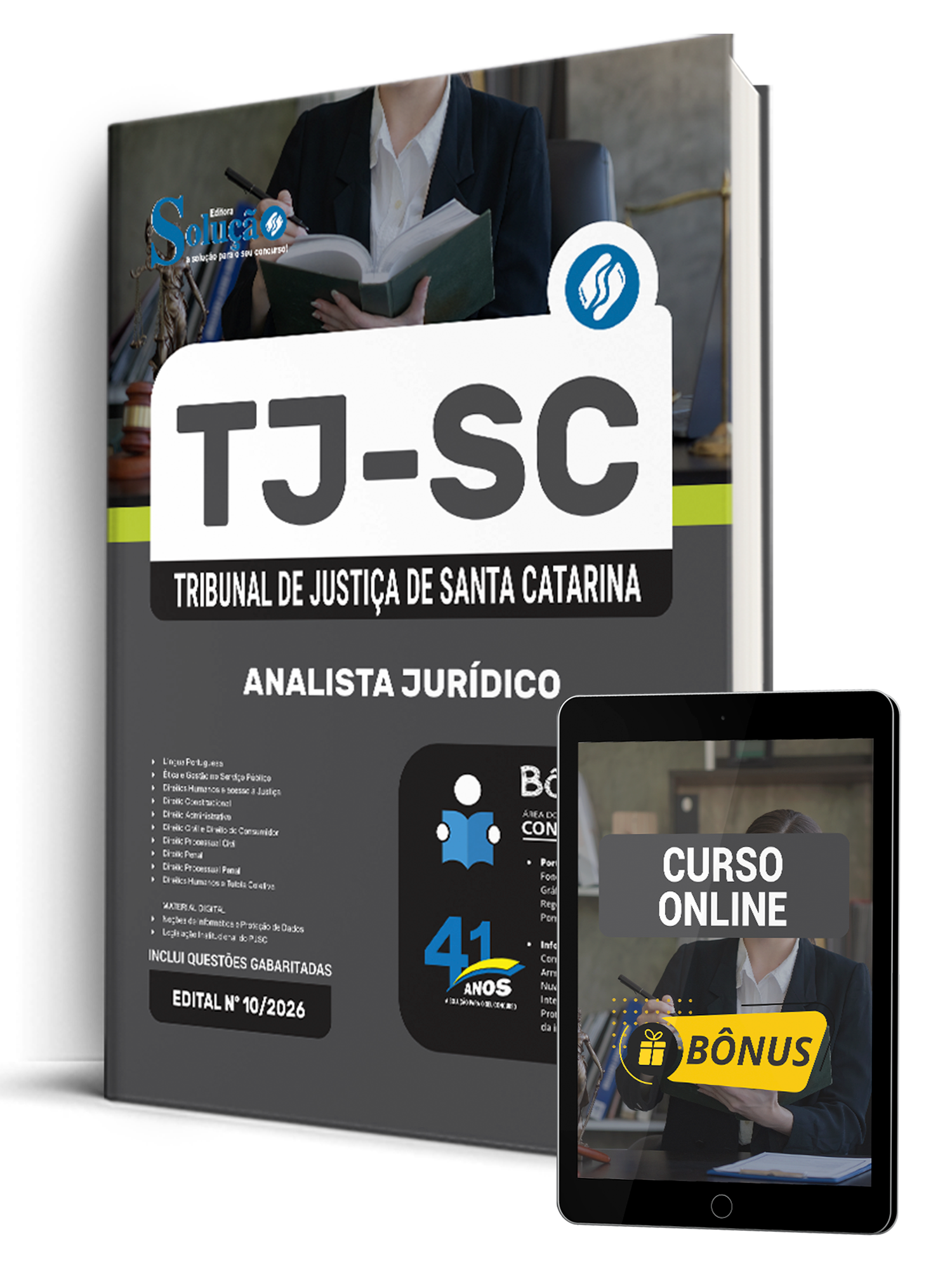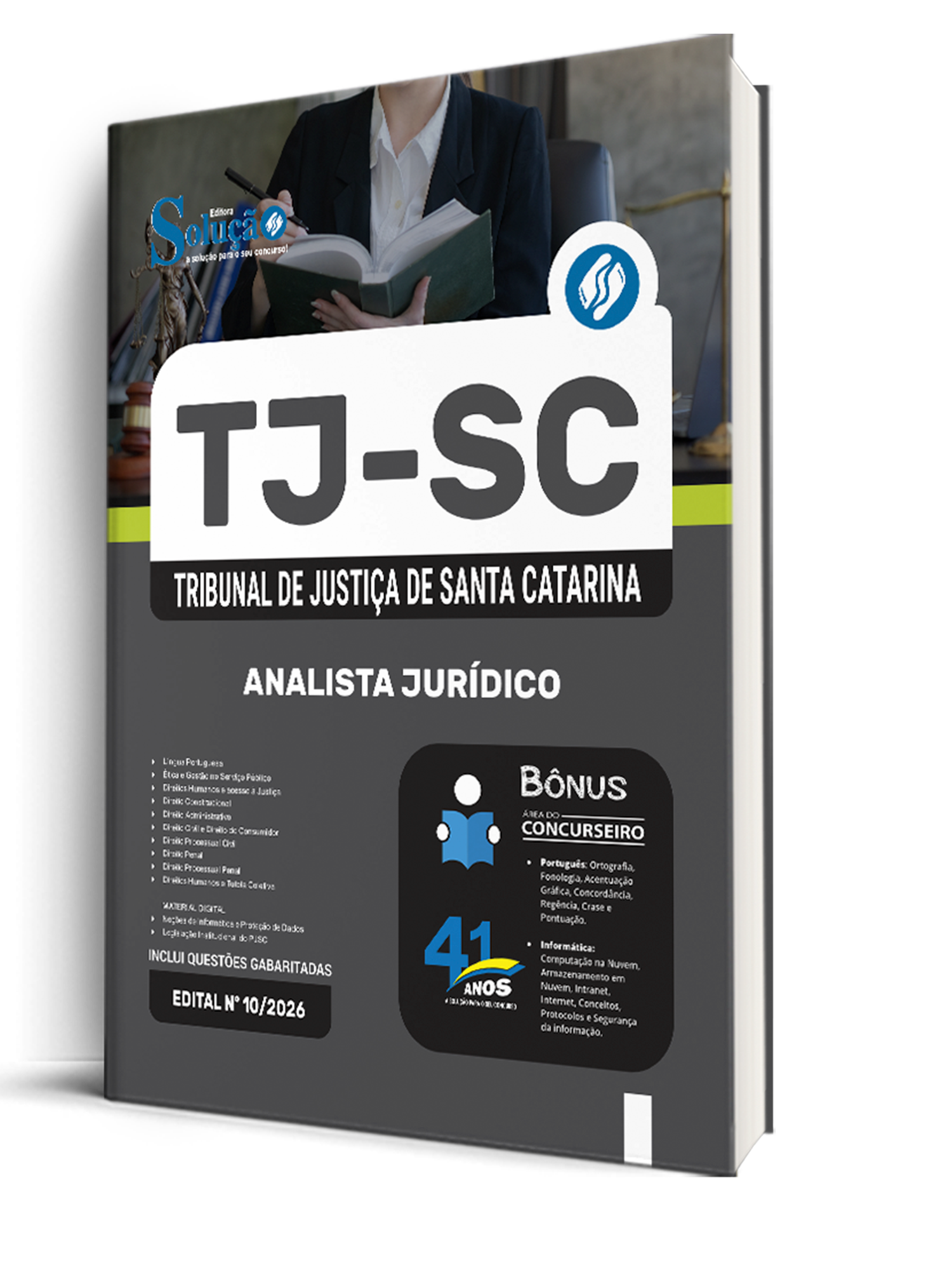 A Apostila Tribunal de Justiça do Estado de Santa Catarina 2026 - Analista Jurídico foi organizada para proporcionar um melhor rendimento na sua preparação, abordando cada conteúdo de forma objetiva e direcionada. Estude para o Concurso da Tribunal de Justiça do Estado de Santa Catarina 2026 com um material de acordo com o Edital oficial para o cargo de Analista Jurídico.