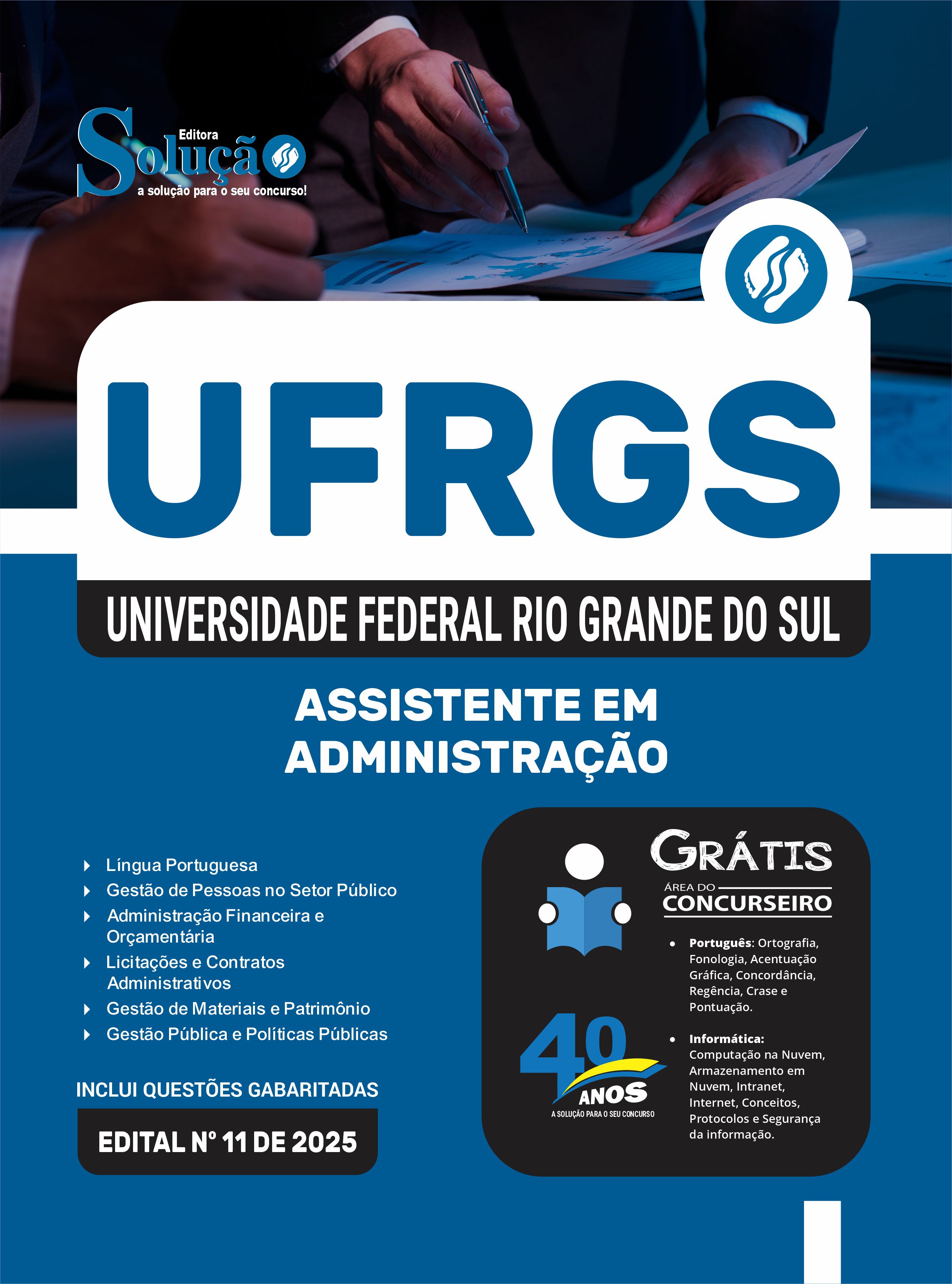 A Apostila Universidade Federal do Rio Grande do Sul 2025 - Assistente em Administração foi organizada para proporcionar um melhor rendimento na sua preparação, abordando cada conteúdo de forma objetiva e direcionada. Estude para o Concurso da Universidade Federal do Rio Grande do Sul 2025 com um material de acordo com o Edital oficial para o cargo de Assistente em Administração.