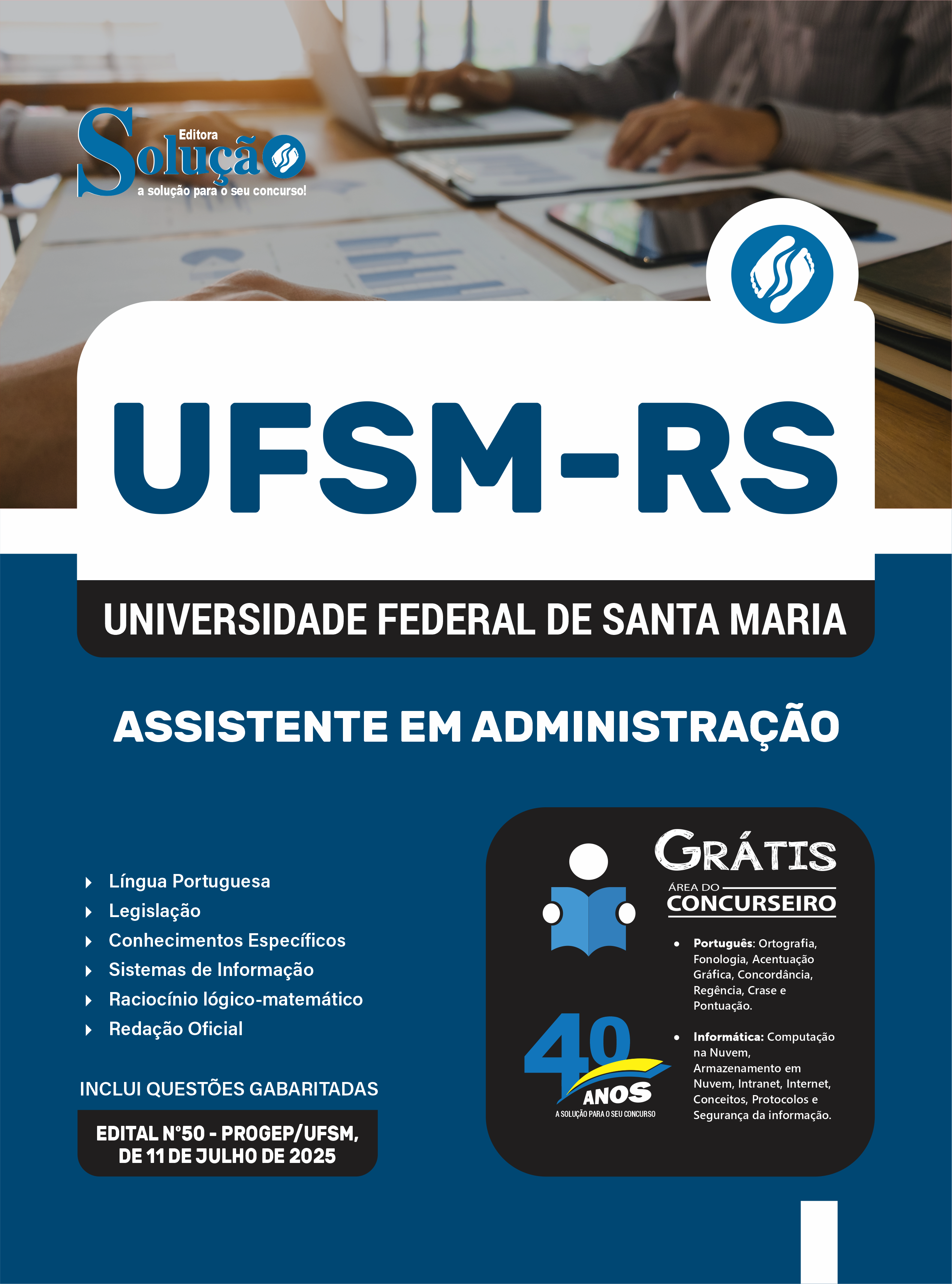 A Apostila Digital Universidade Federal de Santa Maria em PDF 2025 - Assistente em Administração foi organizada para proporcionar um melhor rendimento na sua preparação, abordando cada conteúdo de forma objetiva e direcionada. Estude para o Concurso da Universidade Federal de Santa Maria 2025 com um material de acordo com o Edital oficial para o cargo de Assistente em Administração.