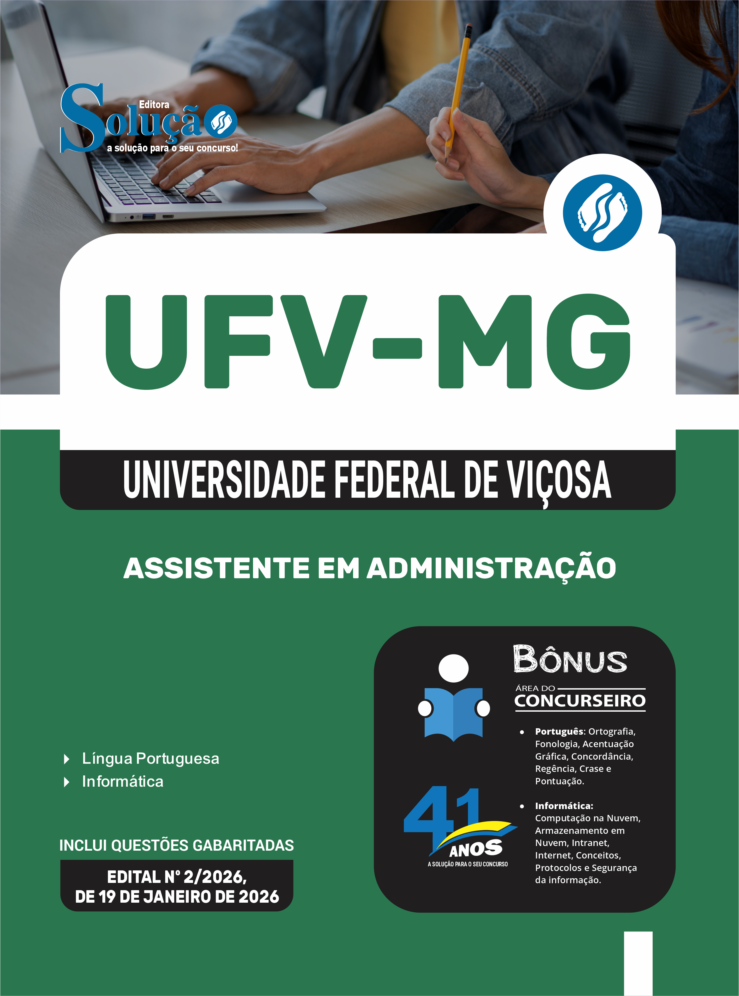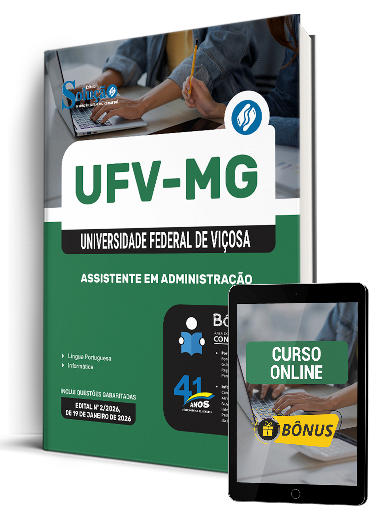 A Apostila Universidade Federal de Viçosa 2026 - Assistente em Administração foi organizada para proporcionar um melhor rendimento na sua preparação, abordando cada conteúdo de forma objetiva e direcionada. Estude para o Concurso da Universidade Federal de Viçosa 2026 com um material de acordo com o Edital oficial para o cargo de Assistente em Administração.