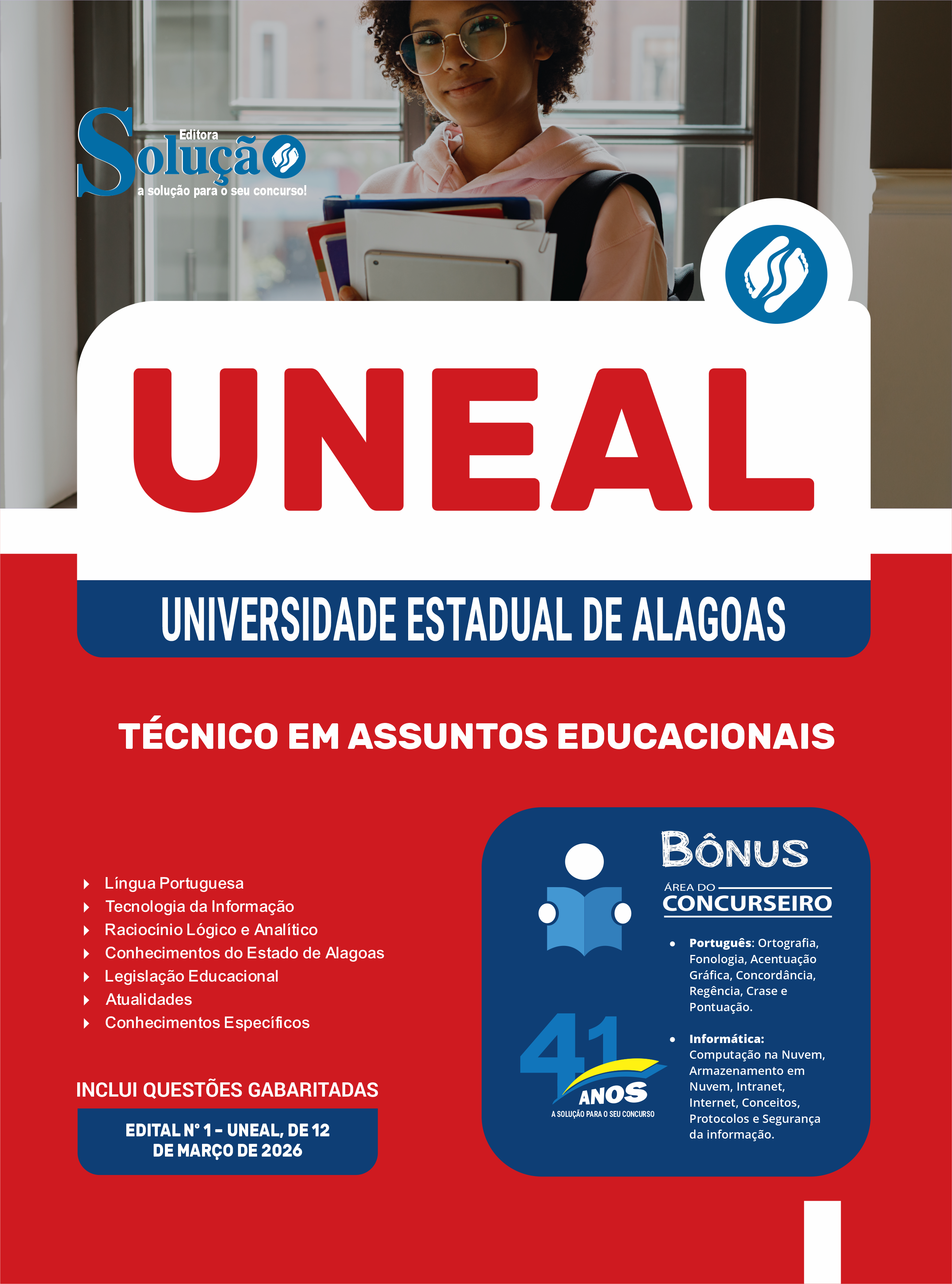 A Apostila Universidade Estadual de Alagoas 2026 - Técnico em Assuntos Educacionais foi organizada para proporcionar um melhor rendimento na sua preparação, abordando cada conteúdo de forma objetiva e direcionada. Estude para o Concurso da Universidade Estadual de Alagoas 2026 com um material de acordo com o Edital oficial para o cargo de Técnico em Assuntos Educacionais.