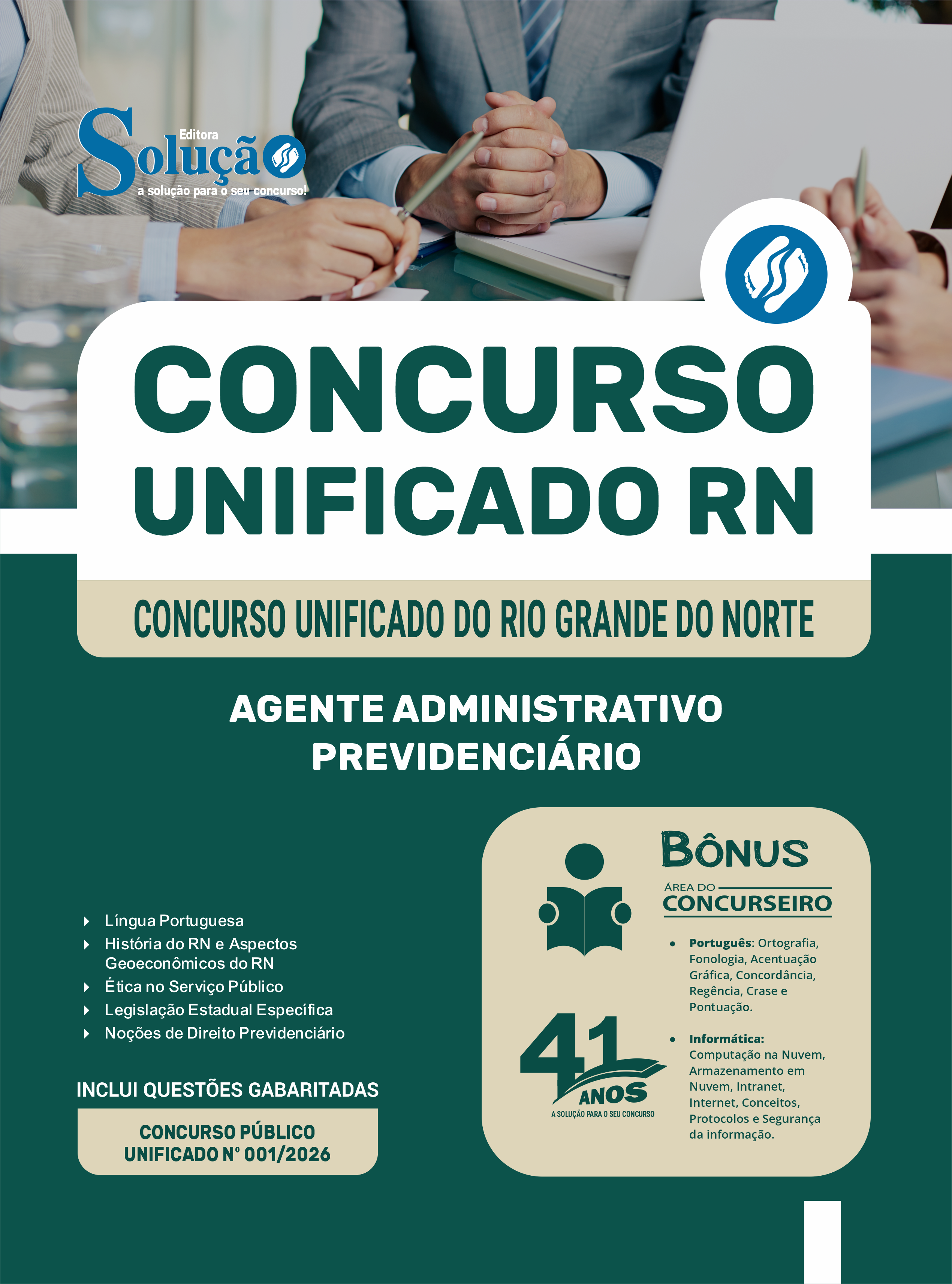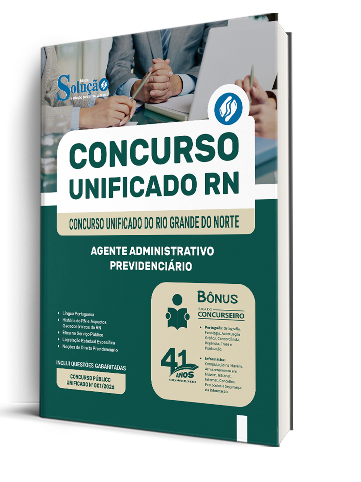 A Apostila Concurso Unificado do Rio Grande do Norte 2026 - Agente Administrativo Previdenciário foi organizada para proporcionar um melhor rendimento na sua preparação, abordando cada conteúdo de forma objetiva e direcionada. Estude para o Concurso da Concurso Unificado do Rio Grande do Norte 2026 com um material de acordo com o Edital oficial para o cargo de Agente Administrativo Previdenciário.