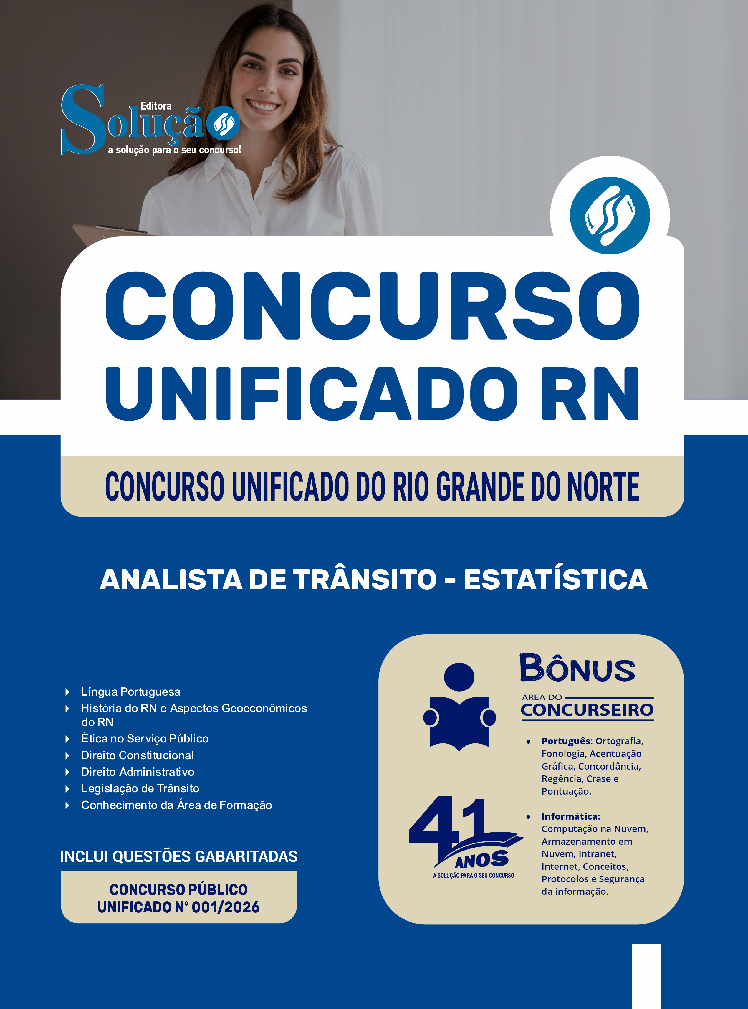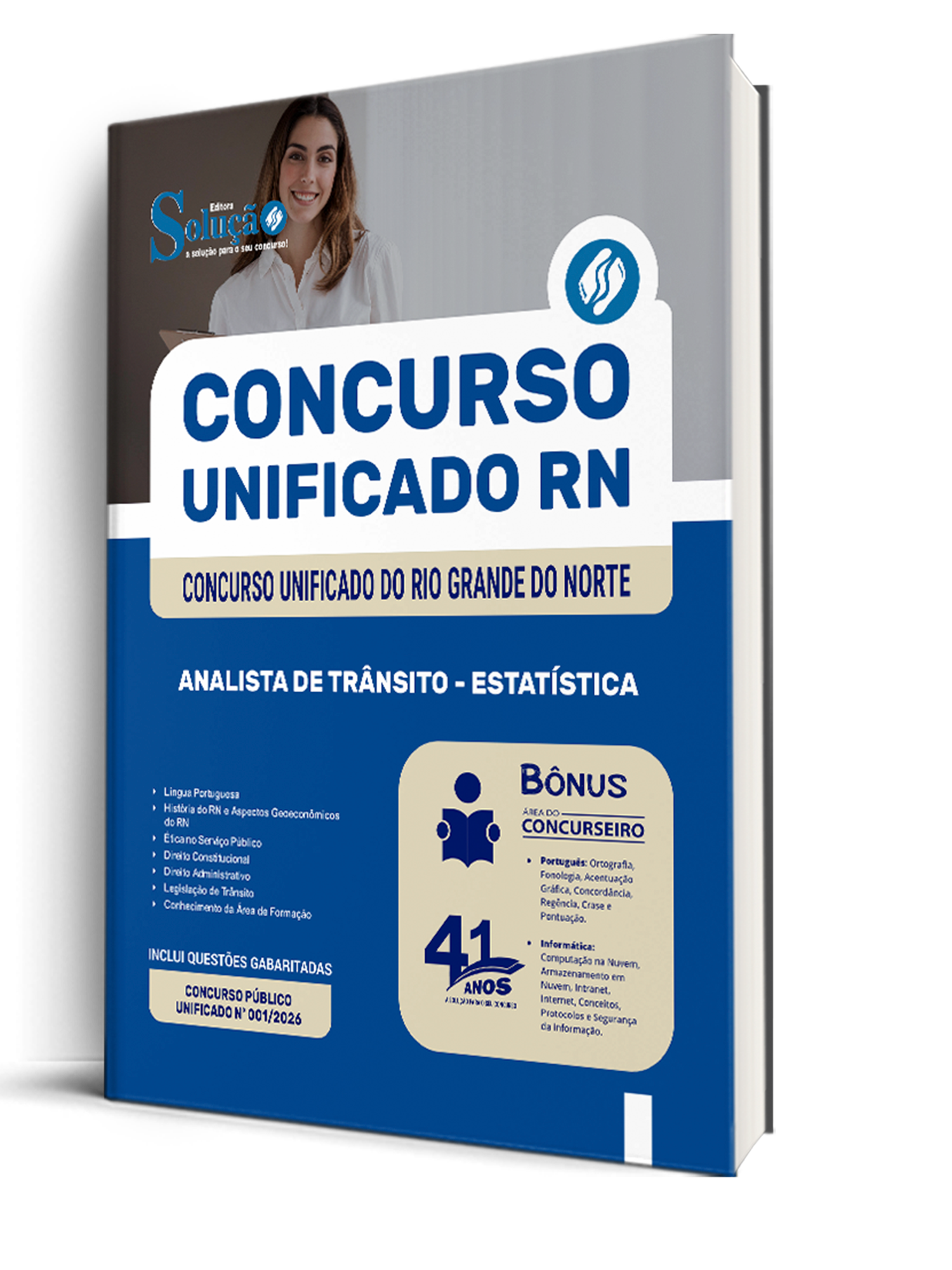 A Apostila Concurso Unificado do Rio Grande do Norte 2026 - Analista de Trânsito - Estatística foi organizada para proporcionar um melhor rendimento na sua preparação, abordando cada conteúdo de forma objetiva e direcionada. Estude para o Concurso da Concurso Unificado do Rio Grande do Norte 2026 com um material de acordo com o Edital oficial para o cargo de Analista de Trânsito - Estatística.