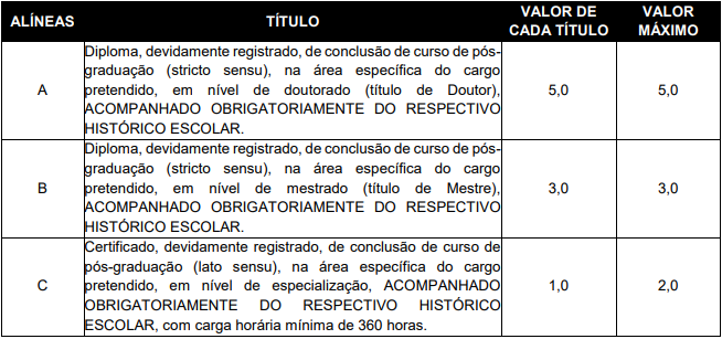 Para essa etapa serão aceitos os seguintes títulos para a avaliação: 👇