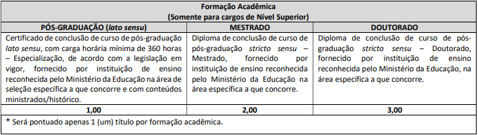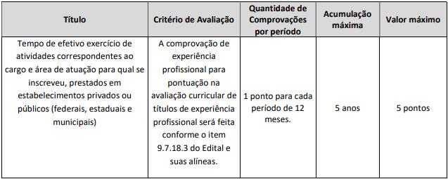 Para essa etapa serão avaliados a Experiência Profissional para os cargos de Cozinheira Escolar e Motorista e a Formação Acadêmica para os cargos de Especialista – Supervisor Escolar; Professor de Creche; Professor PEB II; Professor PEB III- Educação Física.