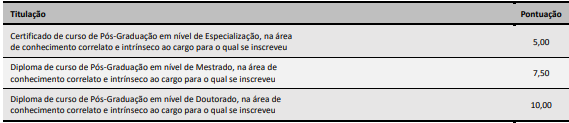 Os títulos apresentados serão avaliados de acordo com a seguinte tabela: