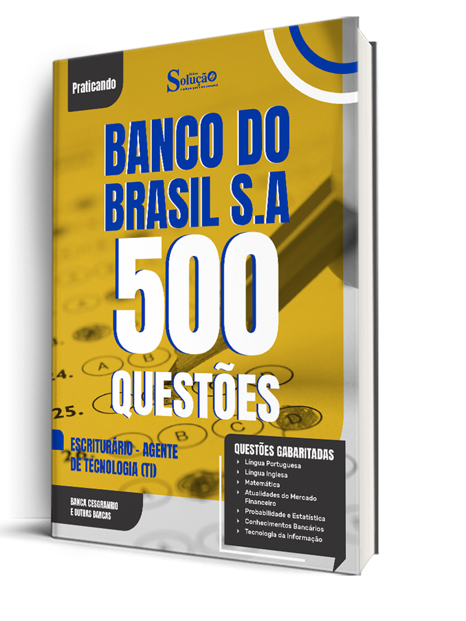 O Caderno de Questões BB - Escriturário - Agente de Tecnologia (TI) - 500 Questões Gabaritadas traz questões cuidadosamente selecionadas pela nossa equipe editorial, de acordo com o edital mais recente do concurso.