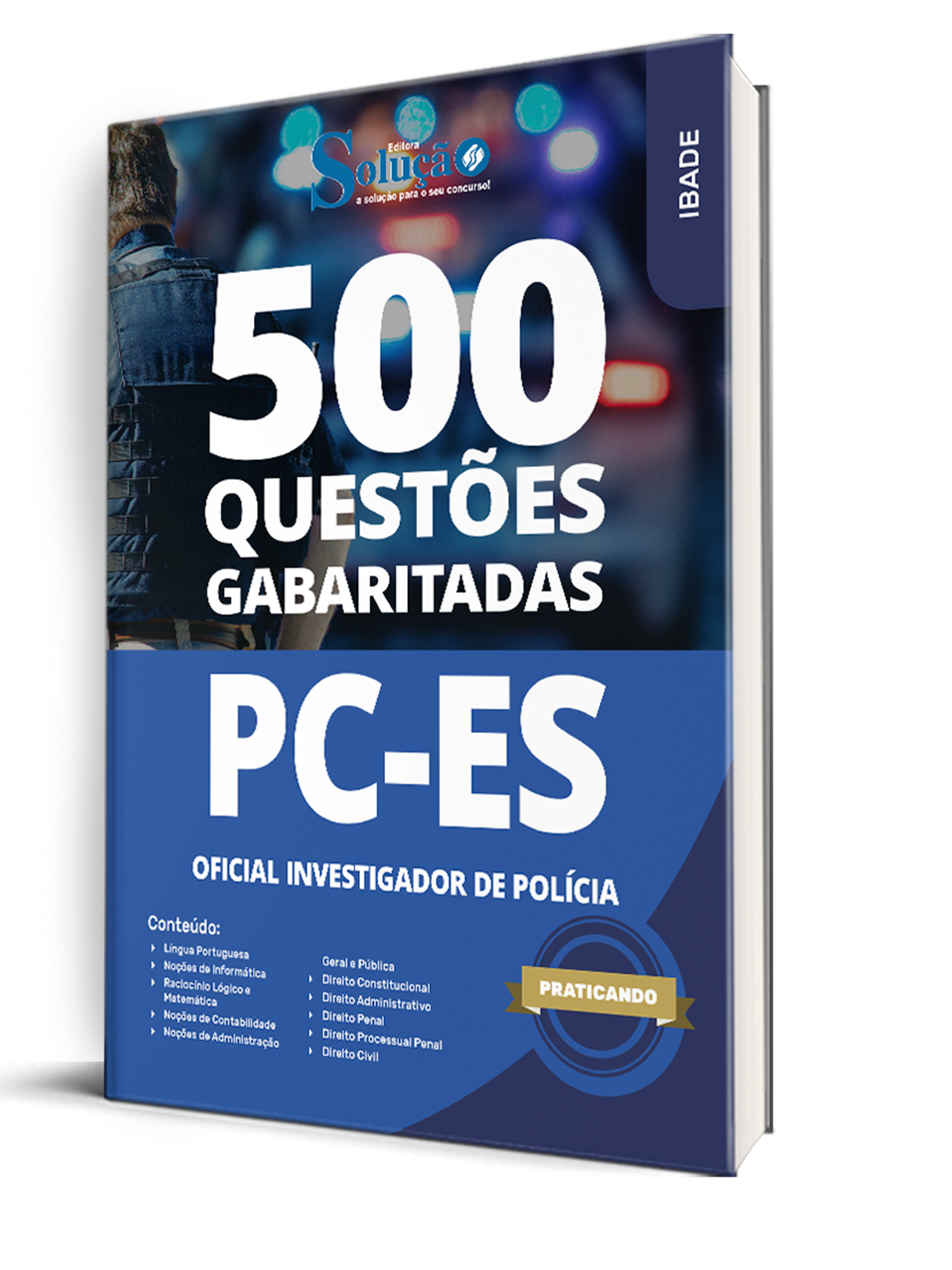 O Caderno de Questões PC-ES - Oficial Investigador de Polícia - 500 Questões Gabaritadas traz questões cuidadosamente selecionadas pela nossa equipe editorial, de acordo com o edital mais recente do concurso.