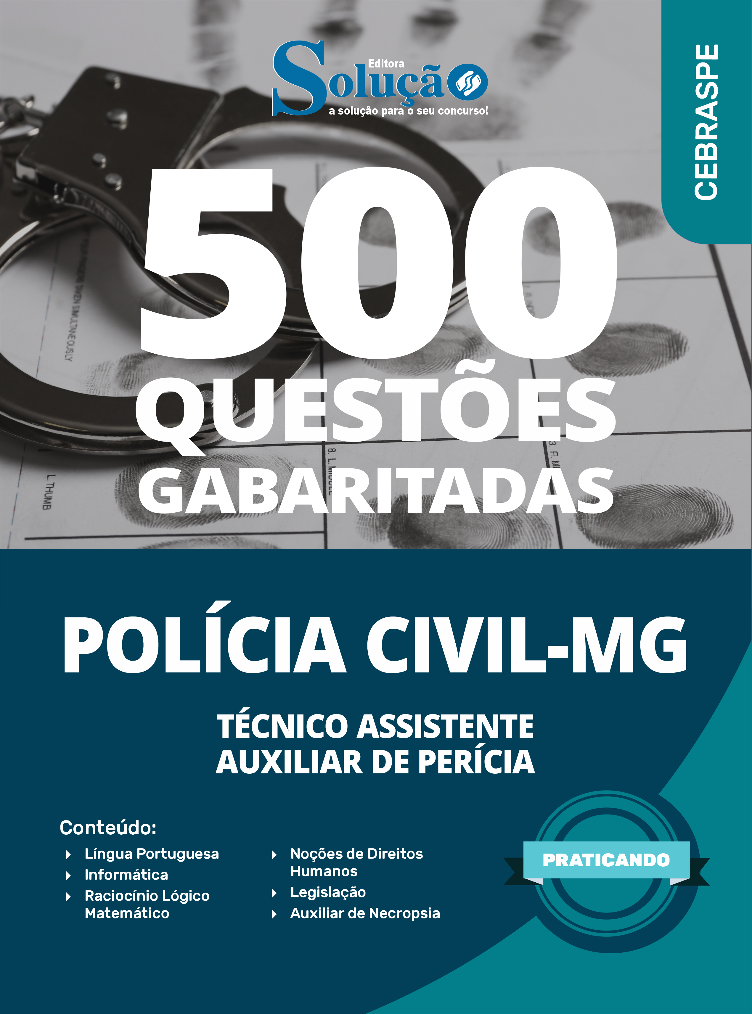 Caderno de Questões PC-MG - Técnico Assistente - Auxiliar de Perícia - 500 Questões Gabaritadas
