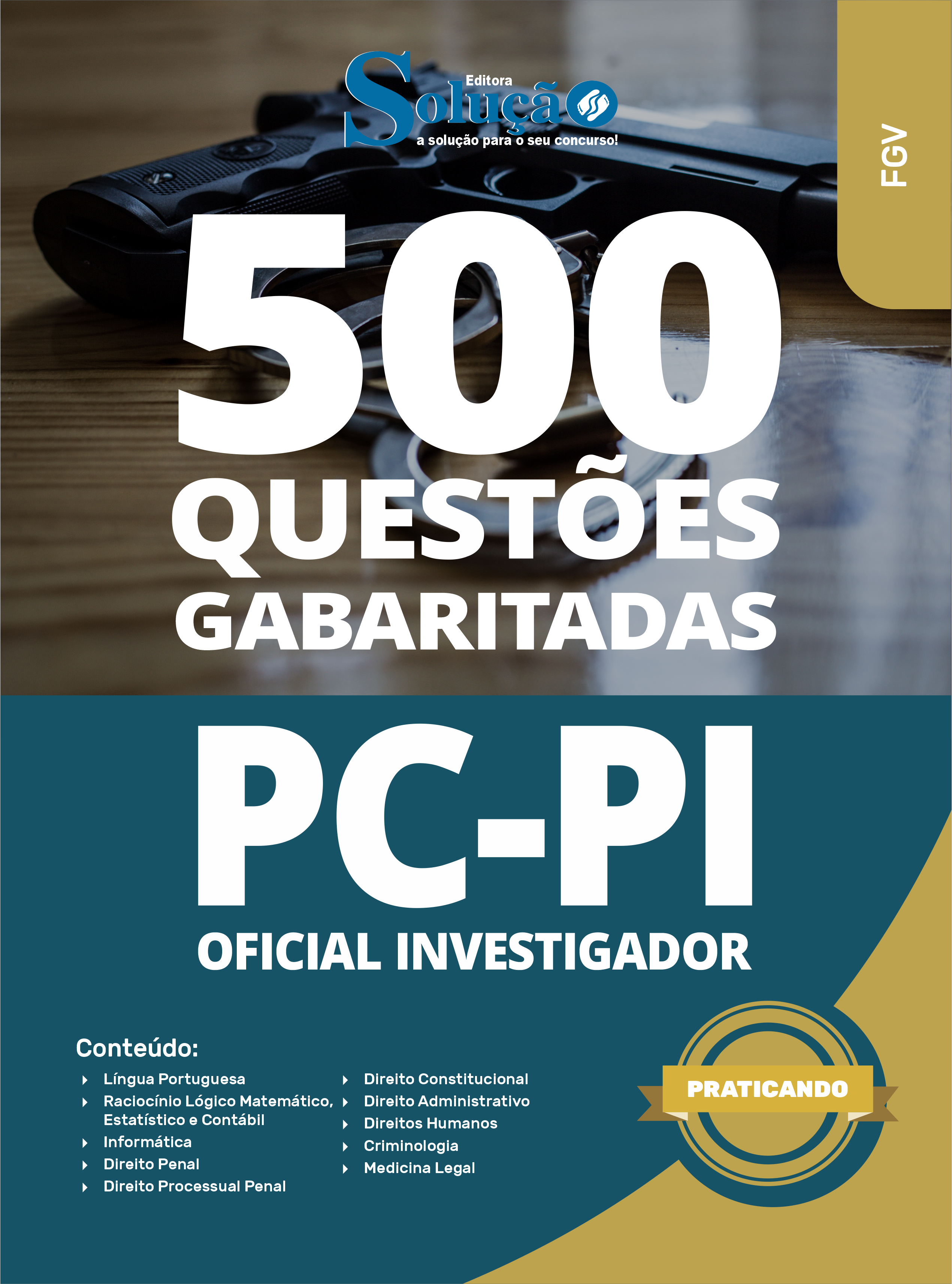 O Caderno de Questões PC-PI - Oficial Investigador - 500 Questões Gabaritadas traz questões cuidadosamente selecionadas pela nossa equipe editorial, de acordo com o edital mais recente do concurso.