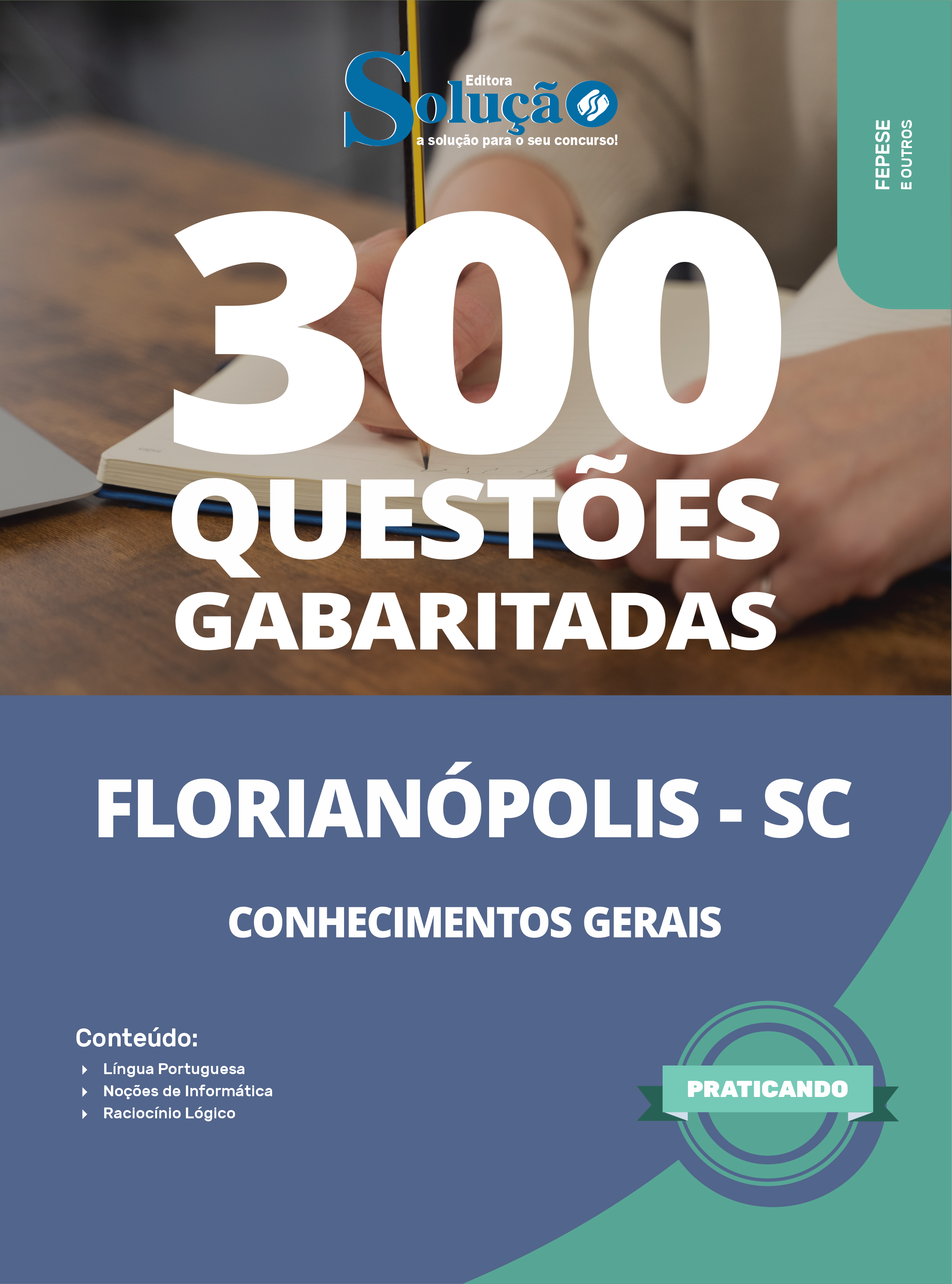 O Caderno de Questões Prefeitura de Florianópolis - SC - Conhecimentos Gerais - 300 Questões Gabaritadas traz questões cuidadosamente selecionadas pela nossa equipe editorial, de acordo com o edital mais recente do concurso.