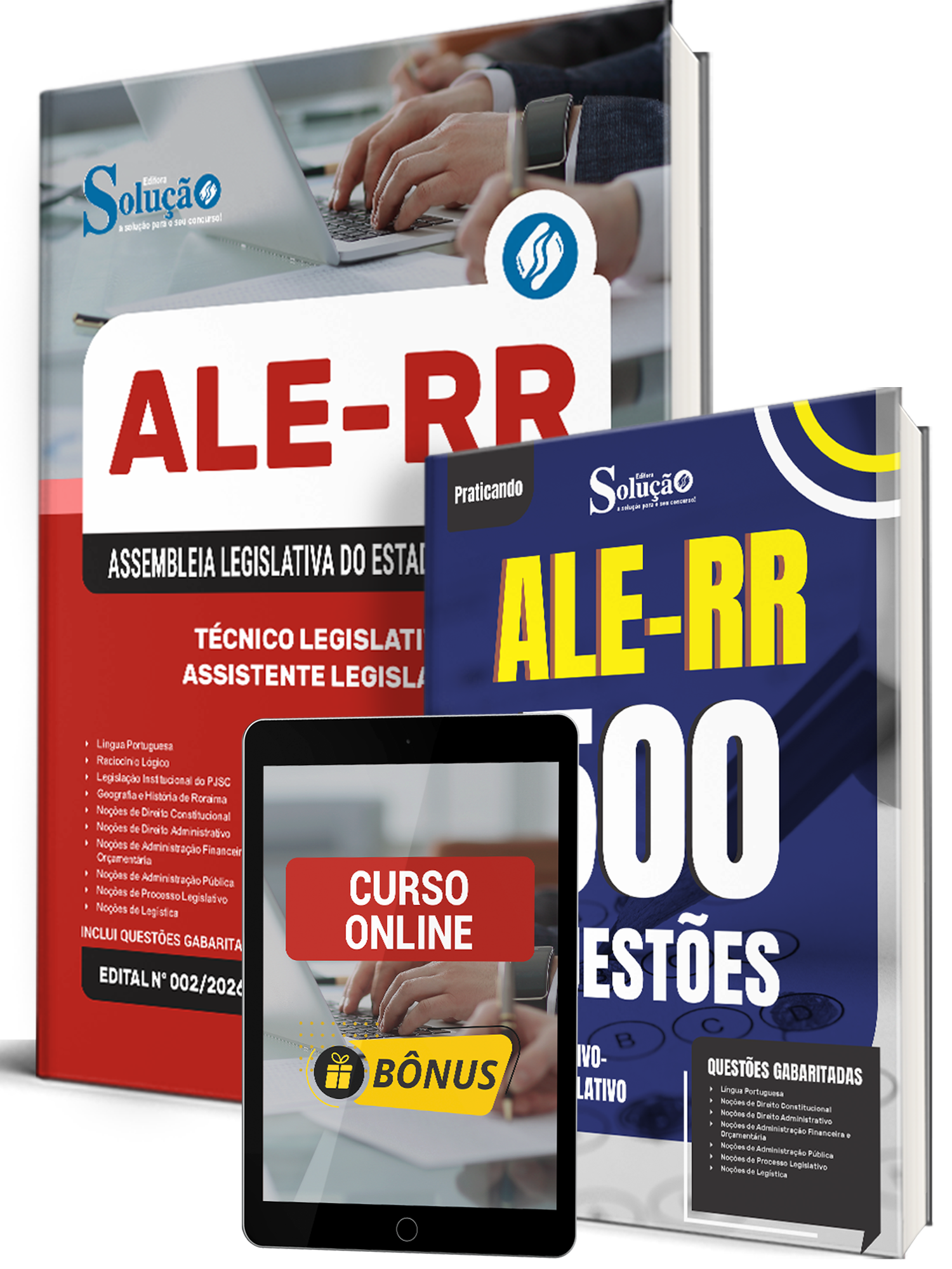 - Caderno de Questões ALE-RR - Técnico Legislativo - Assistente Legislativo - 500 Questões Gabaritadas: traz questões cuidadosamente selecionadas pela nossa equipe editorial, de acordo com o edital mais recente do concurso.
