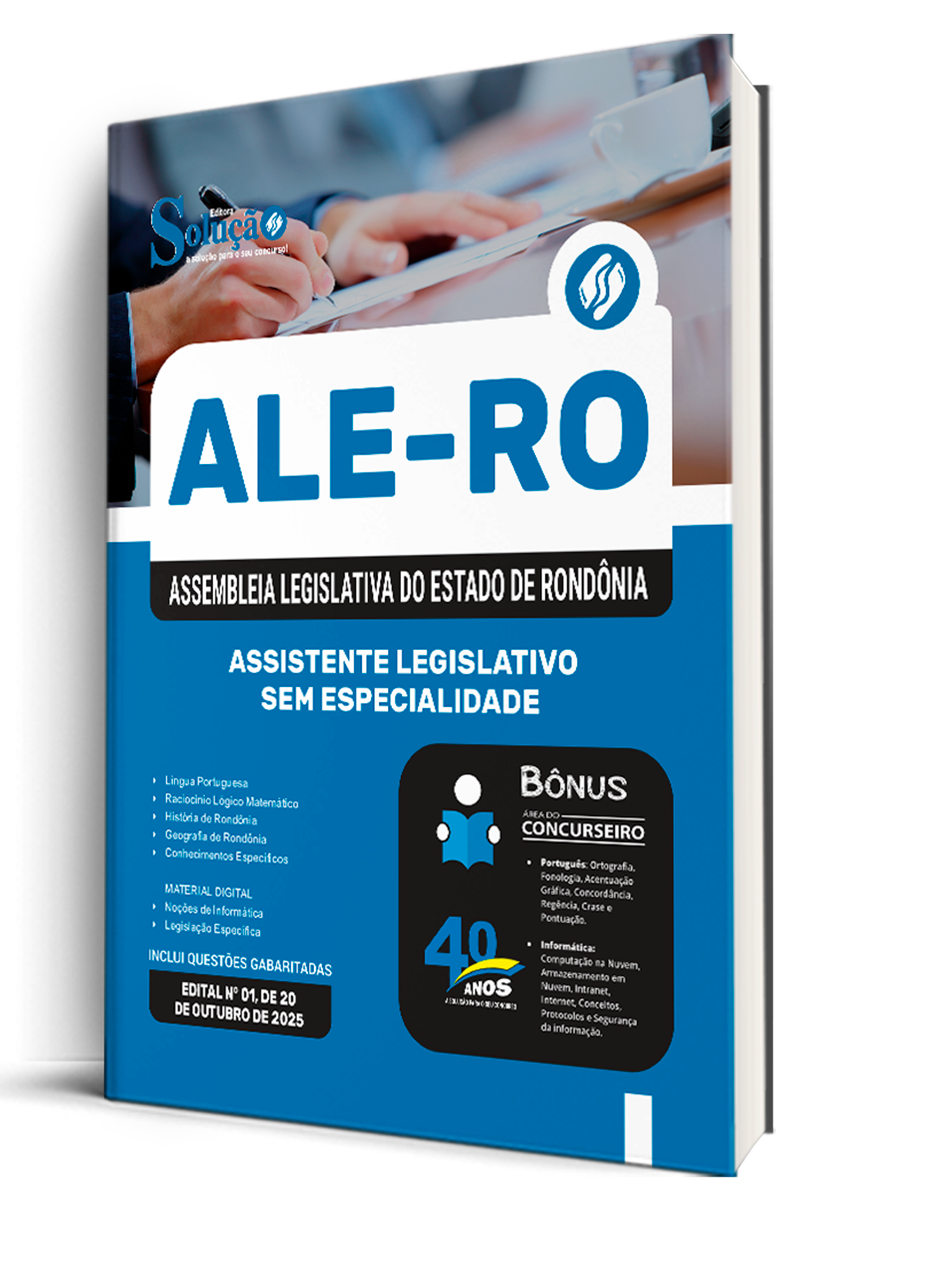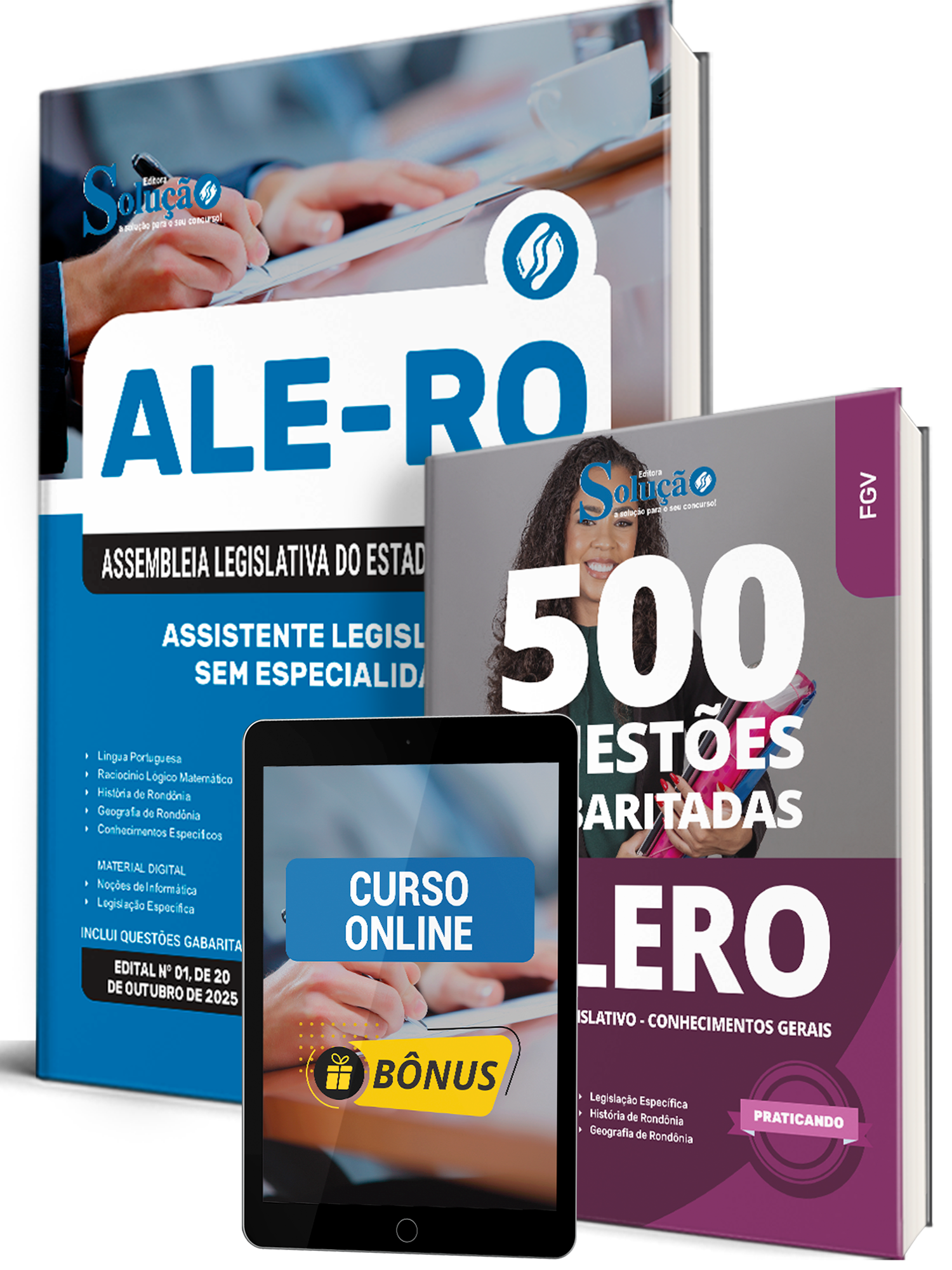 - Apostila ALE-RO 2025 - Assistente Legislativo - Sem especialidade: traz toda a teoria necessária de forma escrita e com exercícios; de acordo com o último edital e elaborado por nossa equipe de professores especializados em concursos.