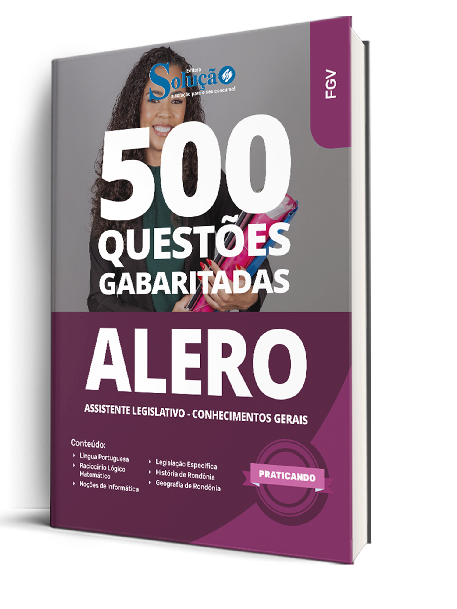 - Caderno de Questões ALE-RO - Assistente Legislativo - Conhecimentos Gerais - 500 Questões Gabaritadas: são questões cuidadosamente escolhidas pela nossa equipe editorial, com ampla experiência em concursos públicos. Estruturado de forma a facilitar o aprendizado e potencializar seus estudos!