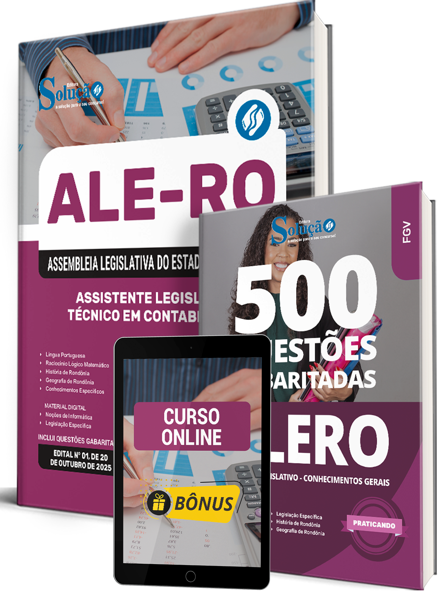 - Apostila ALE-RO 2025 - Assistente Legislativo - Técnico em Contabilidade: traz toda a teoria necessária de forma escrita e com exercícios; de acordo com o último edital e elaborado por nossa equipe de professores especializados em concursos.