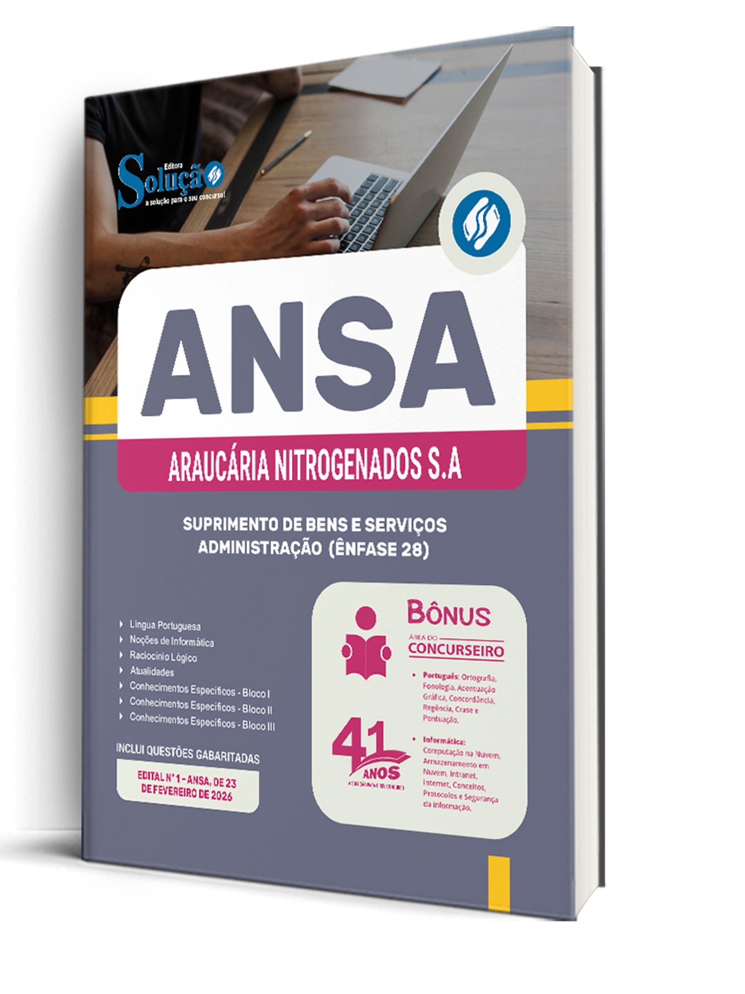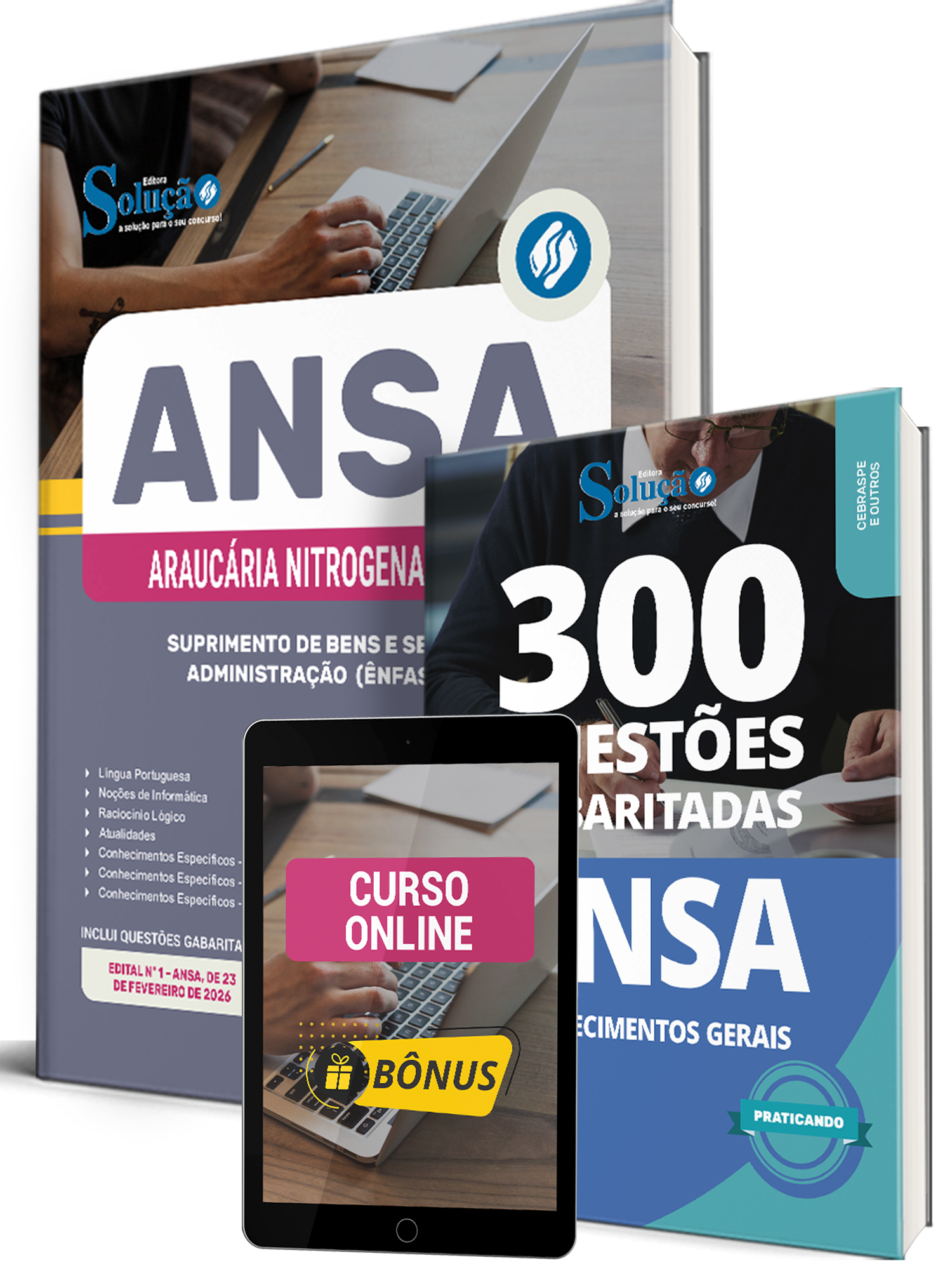 - Caderno de Questões ANSA - Conhecimentos Gerais - 300 Questões Gabaritadas: traz questões cuidadosamente selecionadas pela nossa equipe editorial, de acordo com o edital mais recente do concurso.