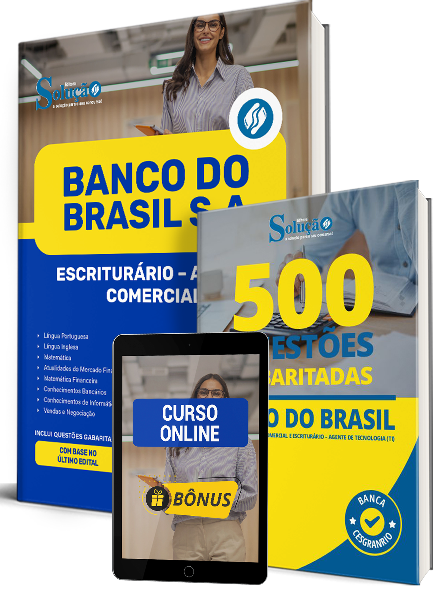 - Caderno de Questões Banco do Brasil - 500 Questões Gabaritadas: traz questões cuidadosamente selecionadas pela nossa equipe editorial, de acordo com o edital mais recente do concurso.