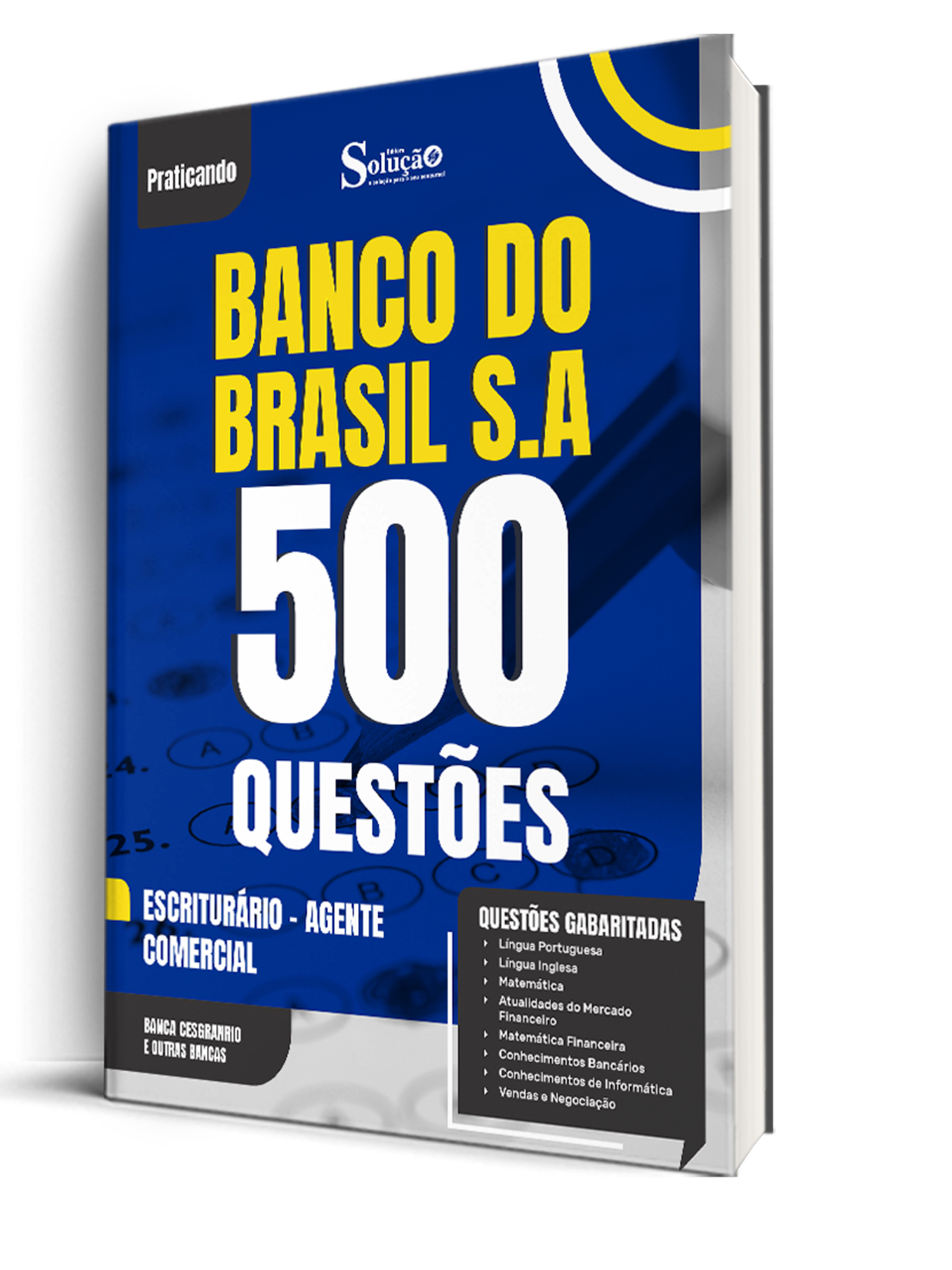 - Caderno de Questões Banco do Brasil - Escriturário - Agente Comercial - 500 Questões Gabaritadas: traz questões cuidadosamente selecionadas pela nossa equipe editorial, de acordo com o edital mais recente do concurso.
