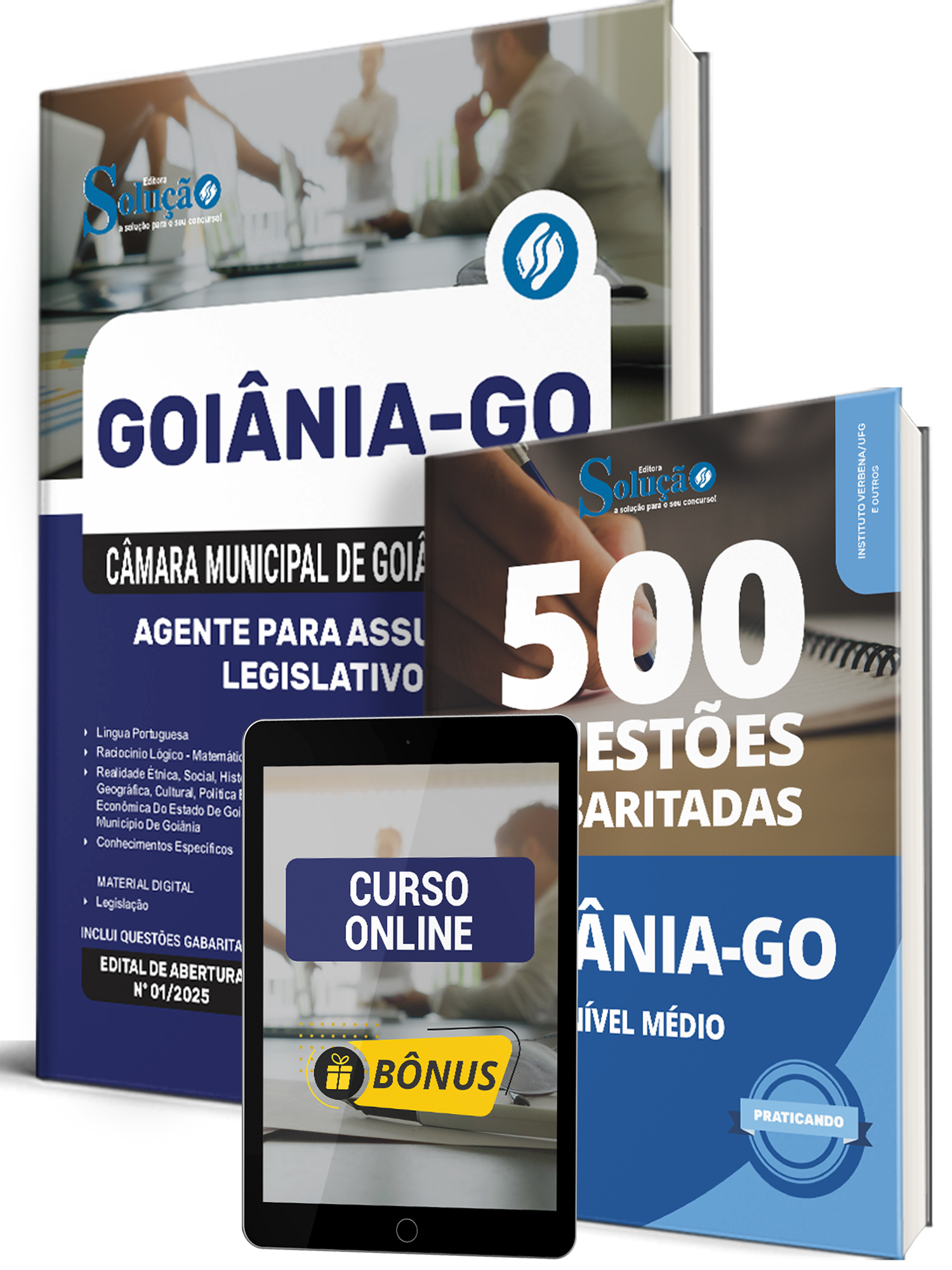 - Caderno de Questões Câmara de Goiânia - GO - Nível Médio - 500 Questões Gabaritadas: traz questões cuidadosamente selecionadas pela nossa equipe editorial, de acordo com o edital mais recente do concurso.