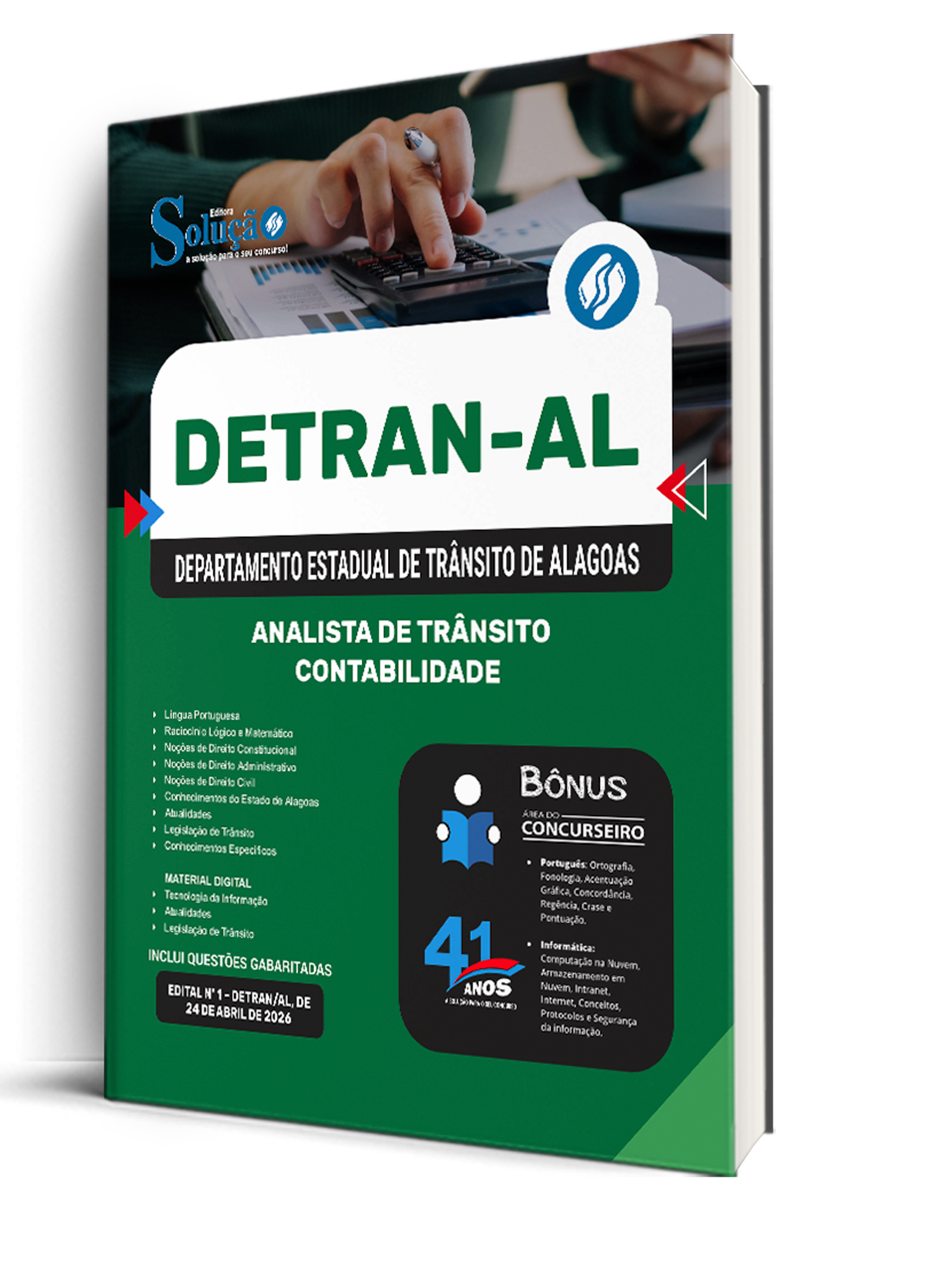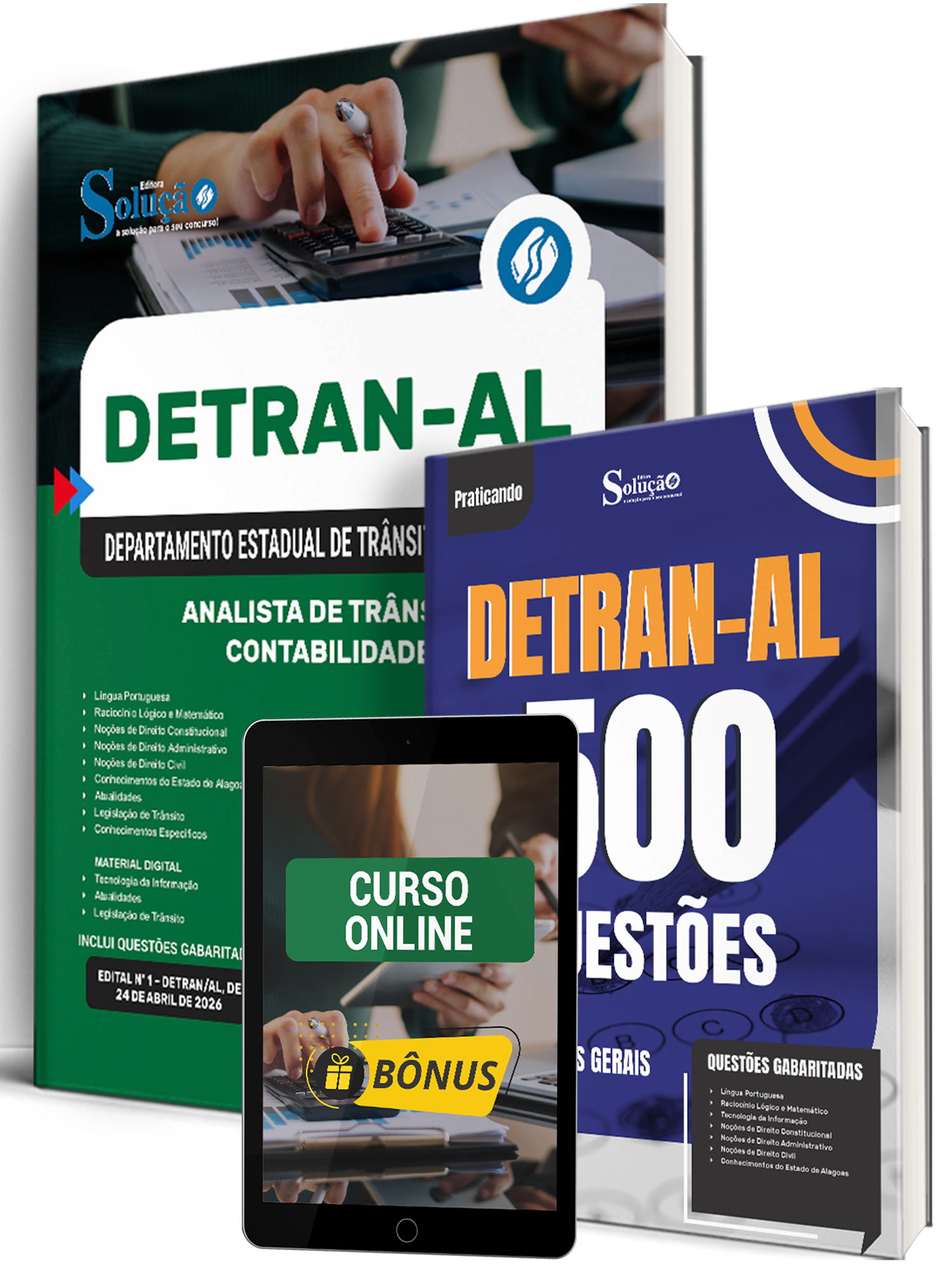 - Apostila DETRAN-AL 2026 - Analista de Trânsito - Contabilidade: traz toda a teoria necessária de forma escrita e com exercícios; de acordo com o último edital e elaborado por nossa equipe de professores especializados em concursos.