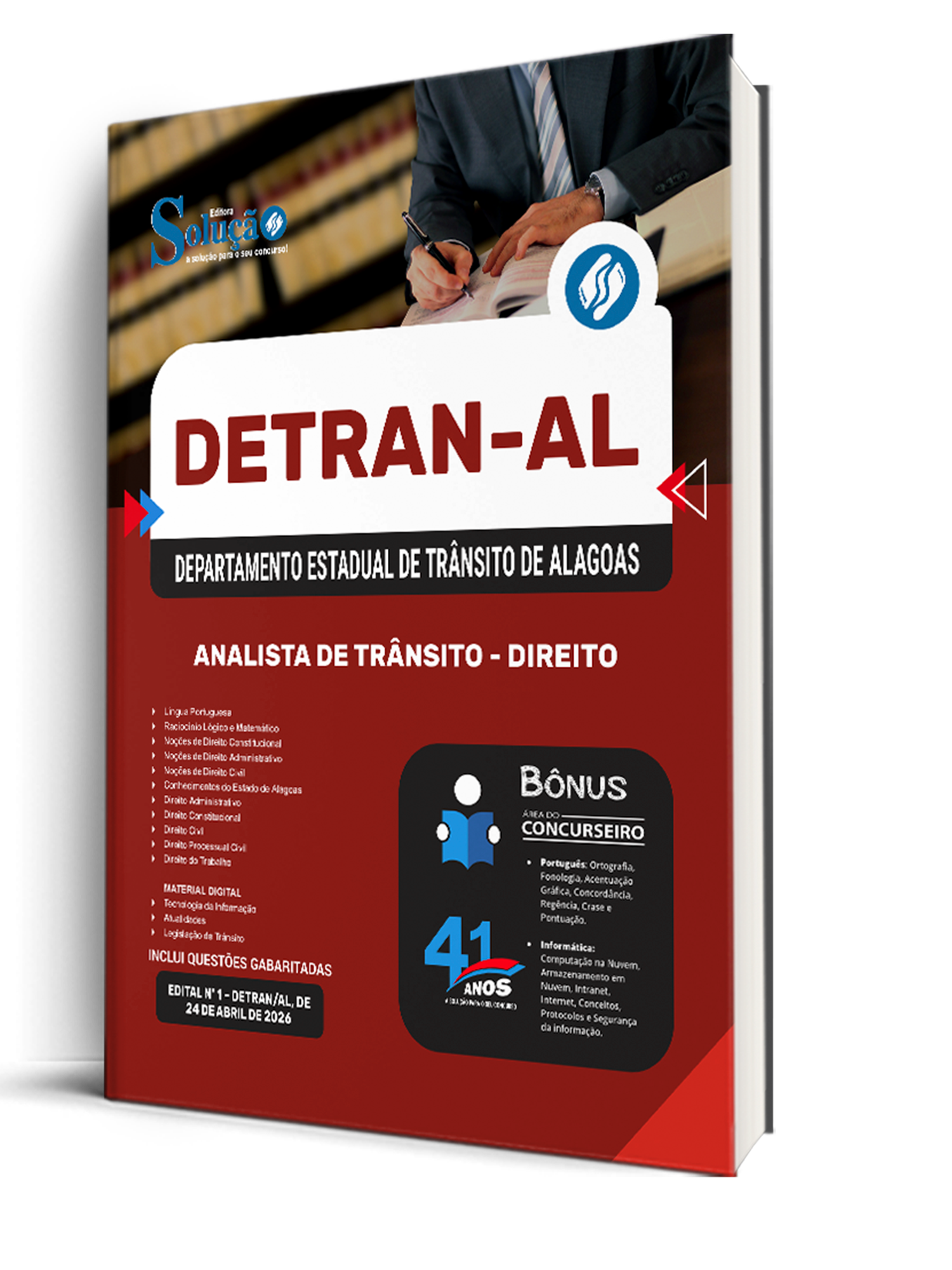 - Apostila DETRAN-AL 2026 - Analista de Trânsito - Direito: traz toda a teoria necessária de forma escrita e com exercícios; de acordo com o último edital e elaborado por nossa equipe de professores especializados em concursos.