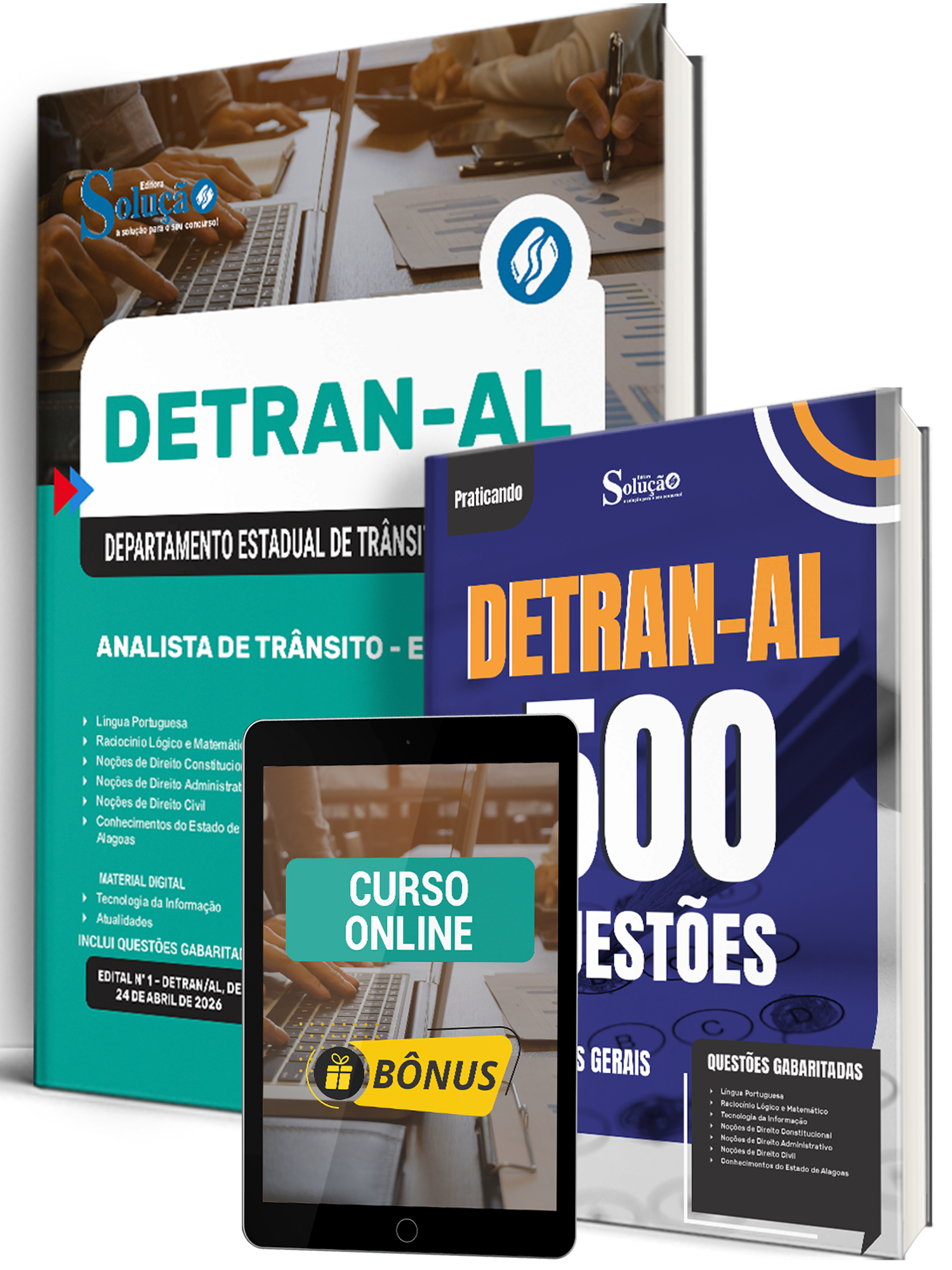 - Caderno de Questões DETRAN-AL - Conhecimentos Gerais - 500 Questões Gabaritadas: traz questões cuidadosamente selecionadas pela nossa equipe editorial, de acordo com o edital mais recente do concurso.