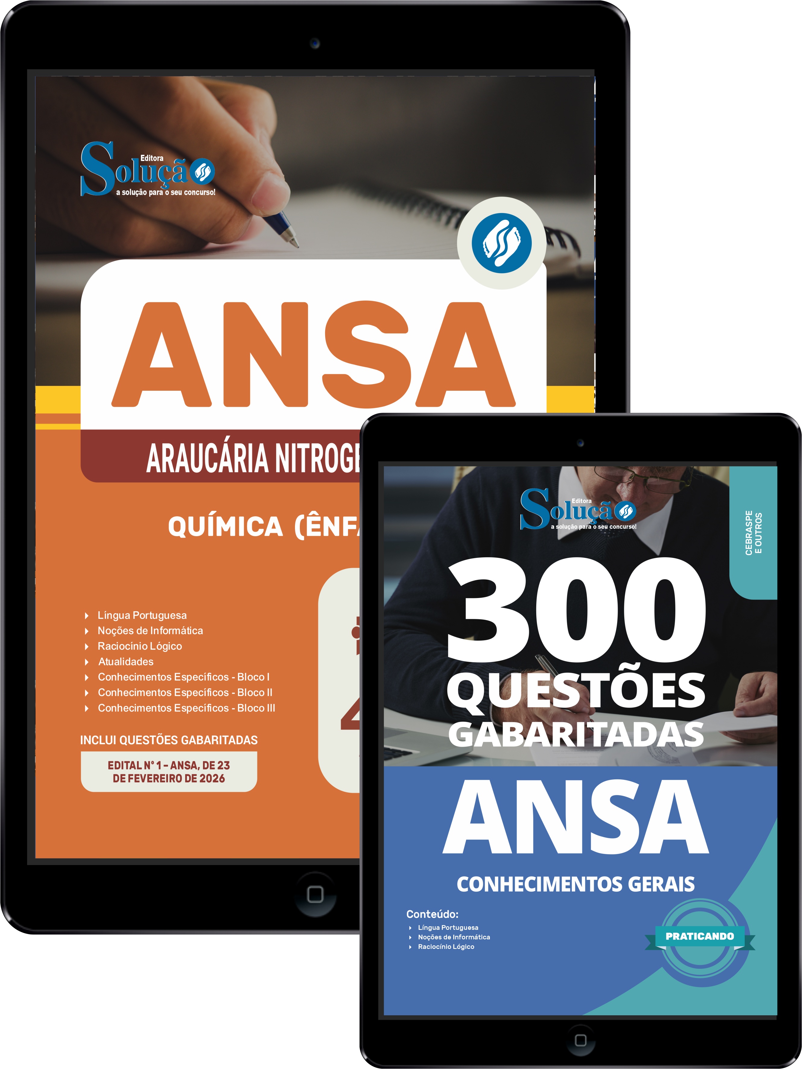 - Caderno de Questões ANSA - Conhecimentos Gerais - 300 Questões Gabaritadas: traz questões cuidadosamente selecionadas pela nossa equipe editorial, de acordo com o edital mais recente do concurso.