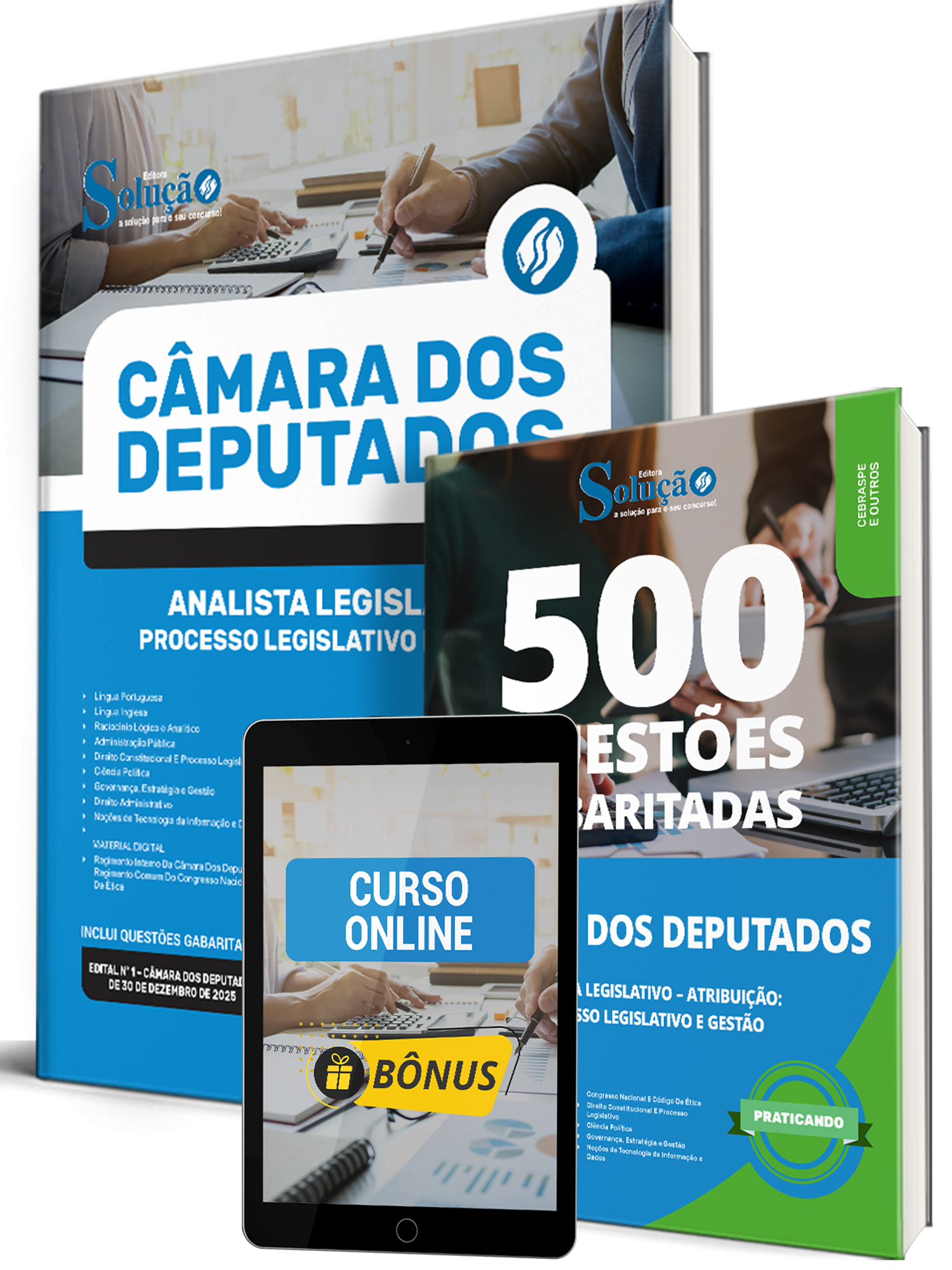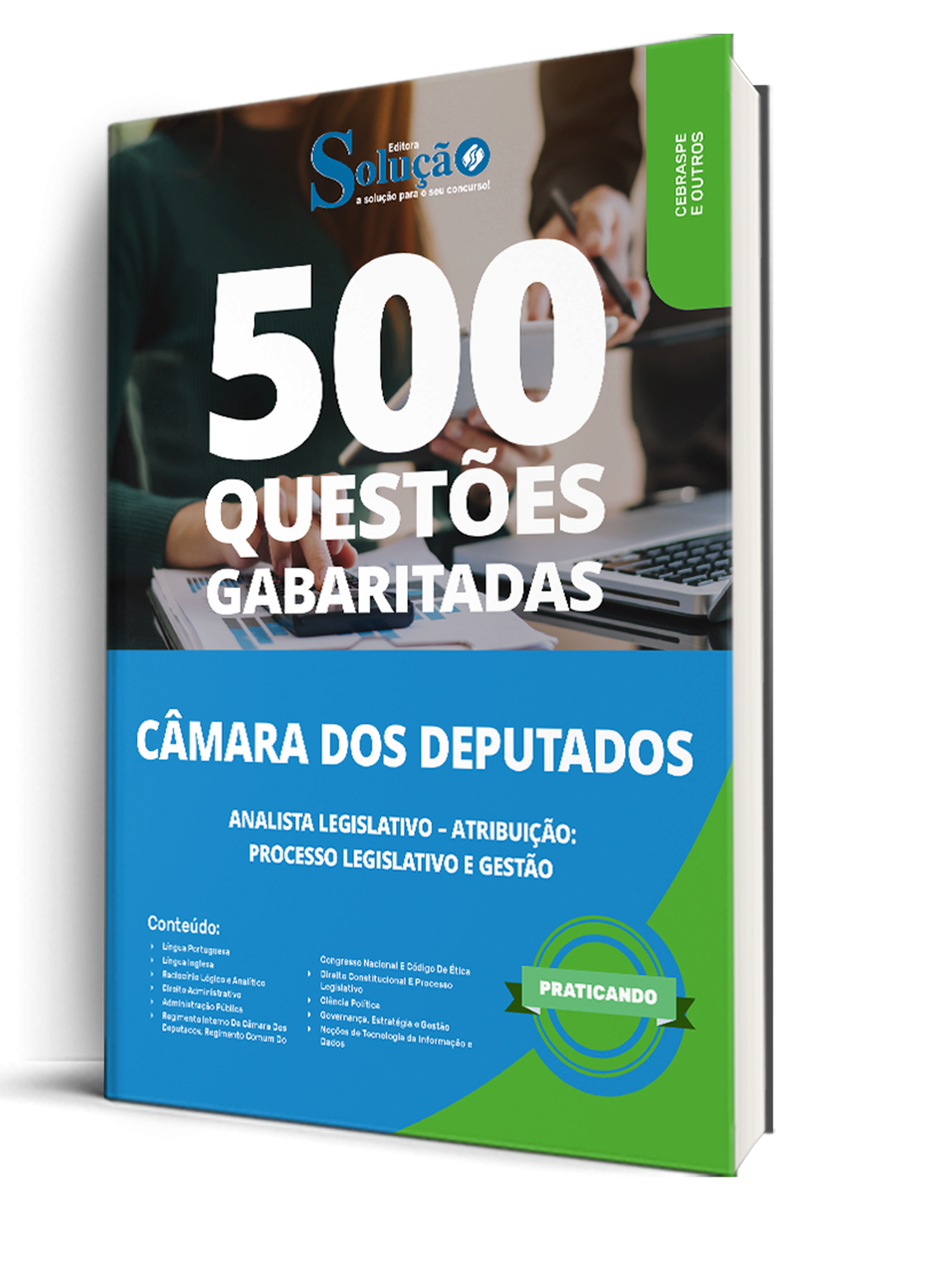 - Caderno de Questões Câmara dos Deputados - Analista Legislativo - 500 Questões Gabaritadas: traz questões cuidadosamente selecionadas pela nossa equipe editorial, de acordo com o edital mais recente do concurso.