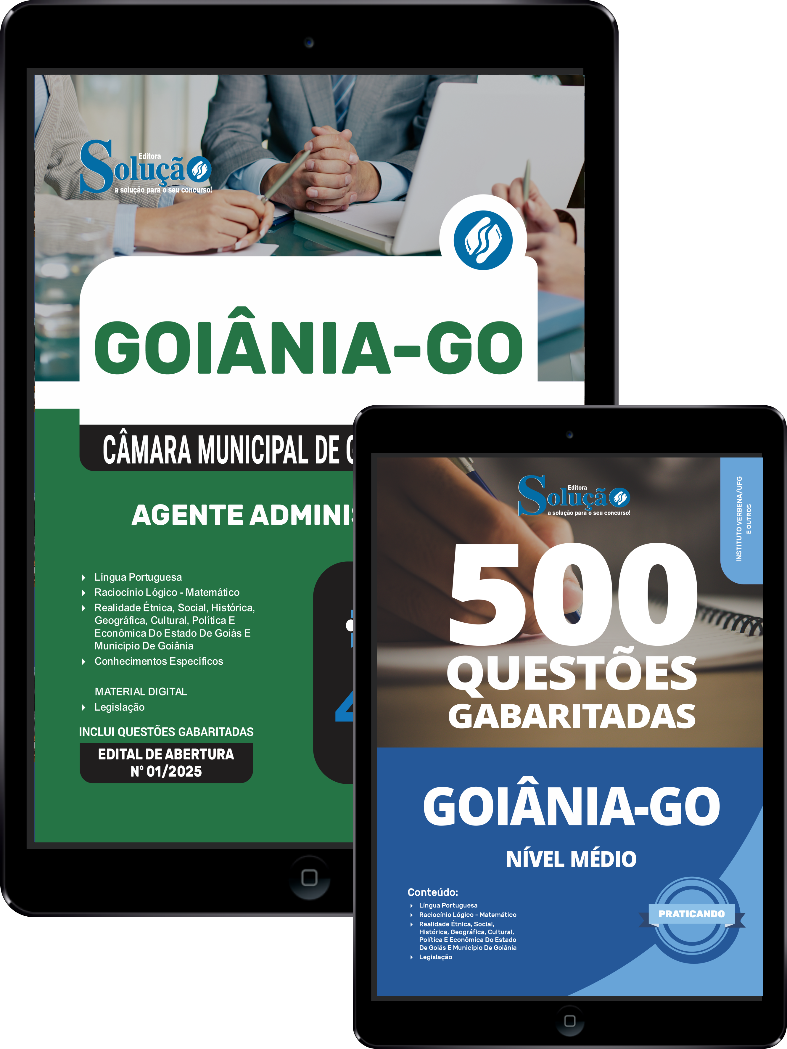 - Caderno de Questões Câmara de Goiânia - GO - Nível Médio - 500 Questões Gabaritadas: traz questões cuidadosamente selecionadas pela nossa equipe editorial, de acordo com o edital mais recente do concurso.