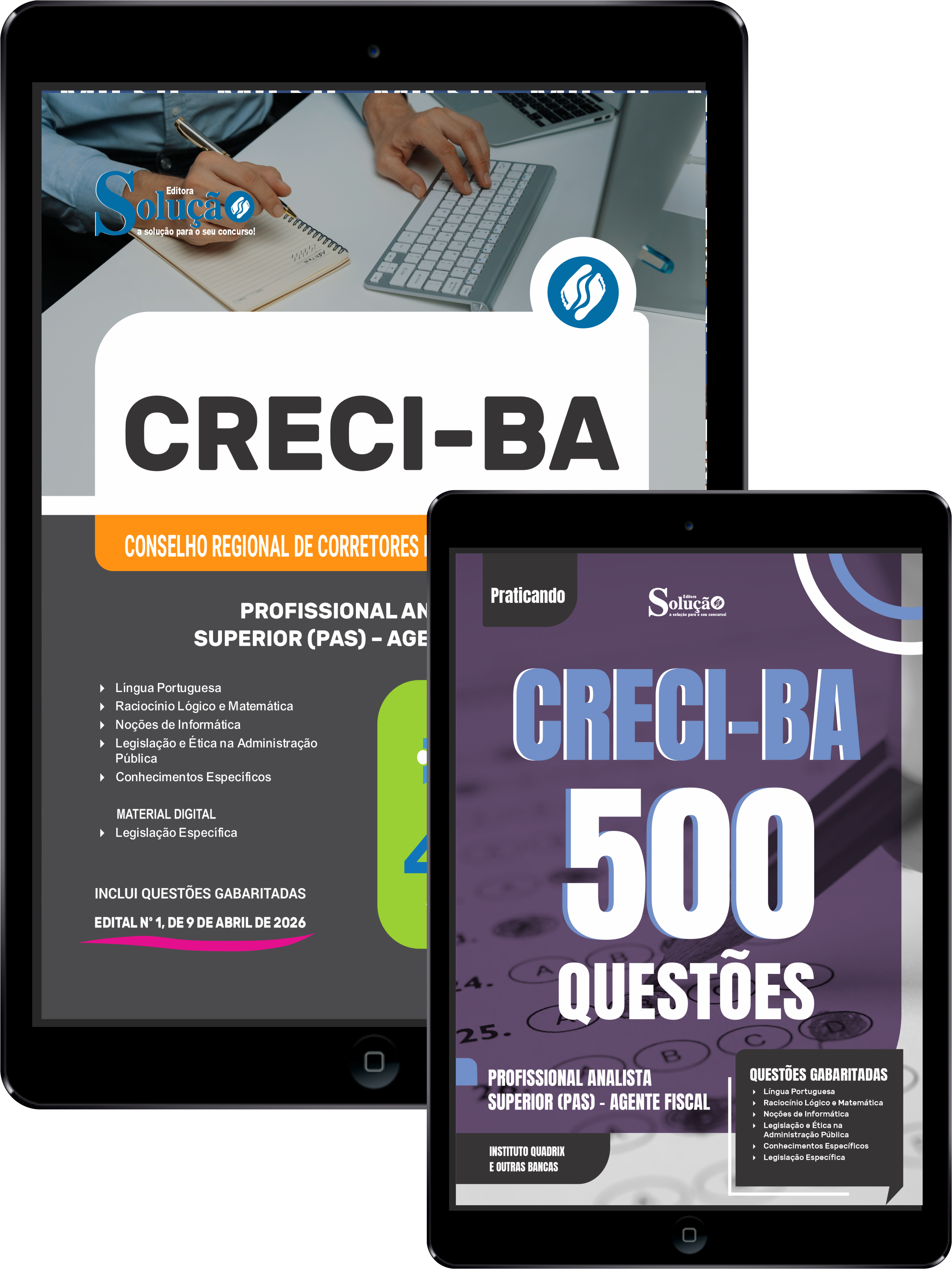 - Caderno de Questões CRECI-BA - Profissional Analista Superior (PAS) - Agente Fiscal - 500 Questões Gabaritadas: traz questões cuidadosamente selecionadas pela nossa equipe editorial, de acordo com o edital mais recente do concurso.