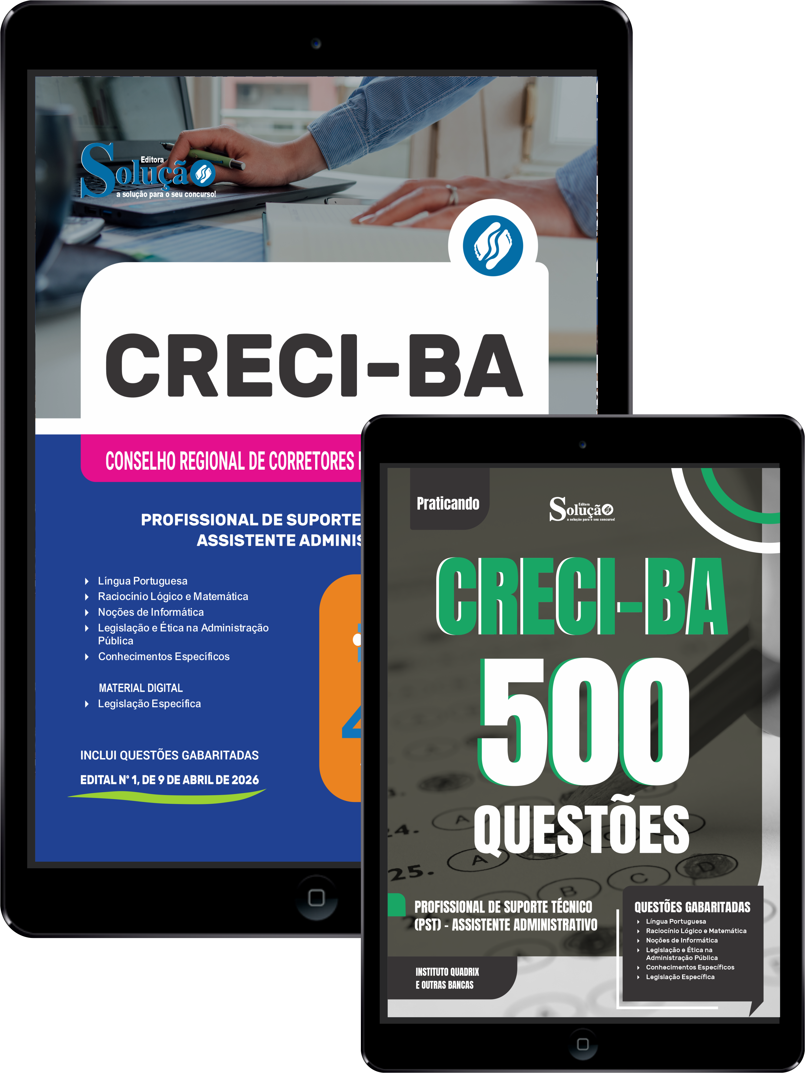 - Caderno de Questões CRECI-BA - Profissional de Suporte Técnico (PST) - Assistente Administrativo - 500 Questões Gabaritadas: traz questões cuidadosamente selecionadas pela nossa equipe editorial, de acordo com o edital mais recente do concurso.