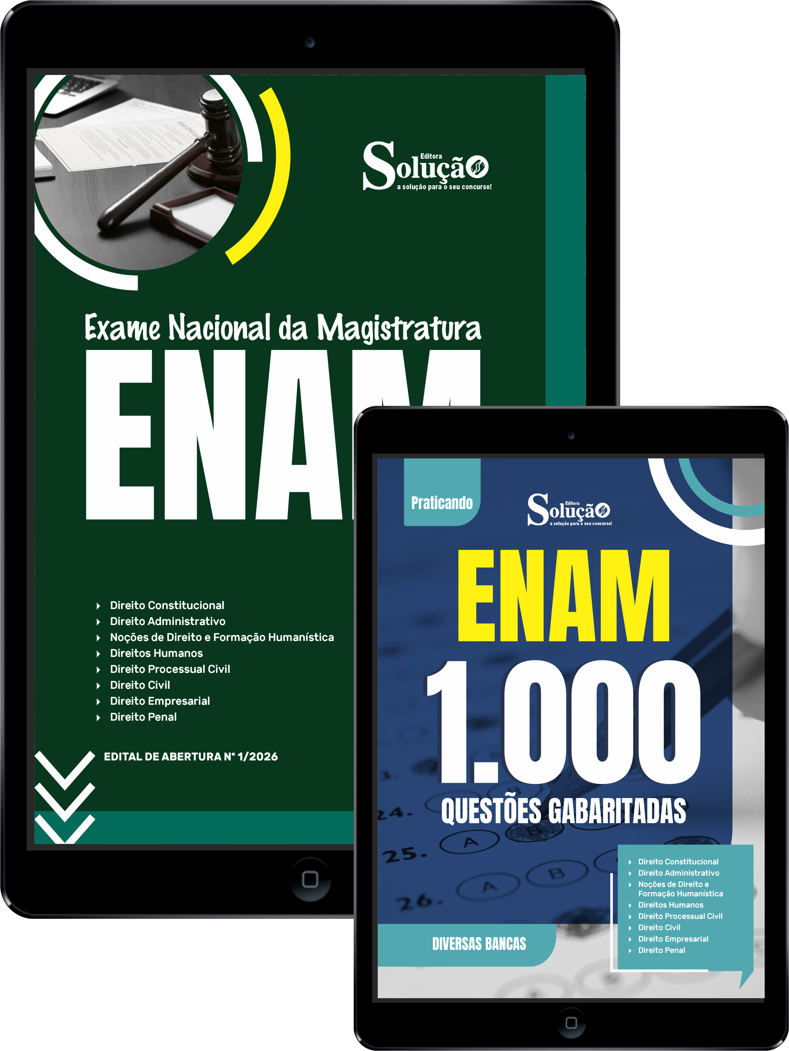 - Caderno de Questões ENAM - Exame Nacional da Magistratura - 1000 Questões Gabaritadas: traz questões cuidadosamente selecionadas pela nossa equipe editorial, de acordo com o edital mais recente do concurso.