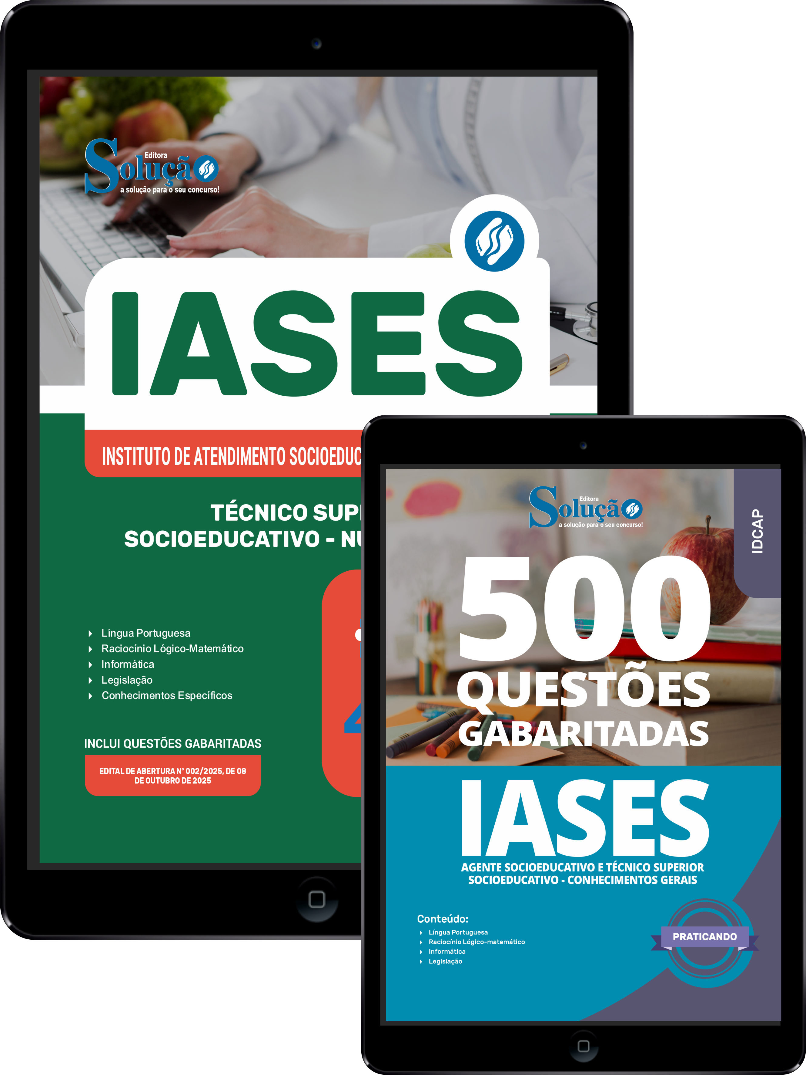 - Apostila IASES 2025 - Técnico Superior Socioeducativo - Nutricionista: traz toda a teoria necessária de forma escrita e com exercícios; de acordo com o último edital e elaborado por nossa equipe de professores especializados em concursos.