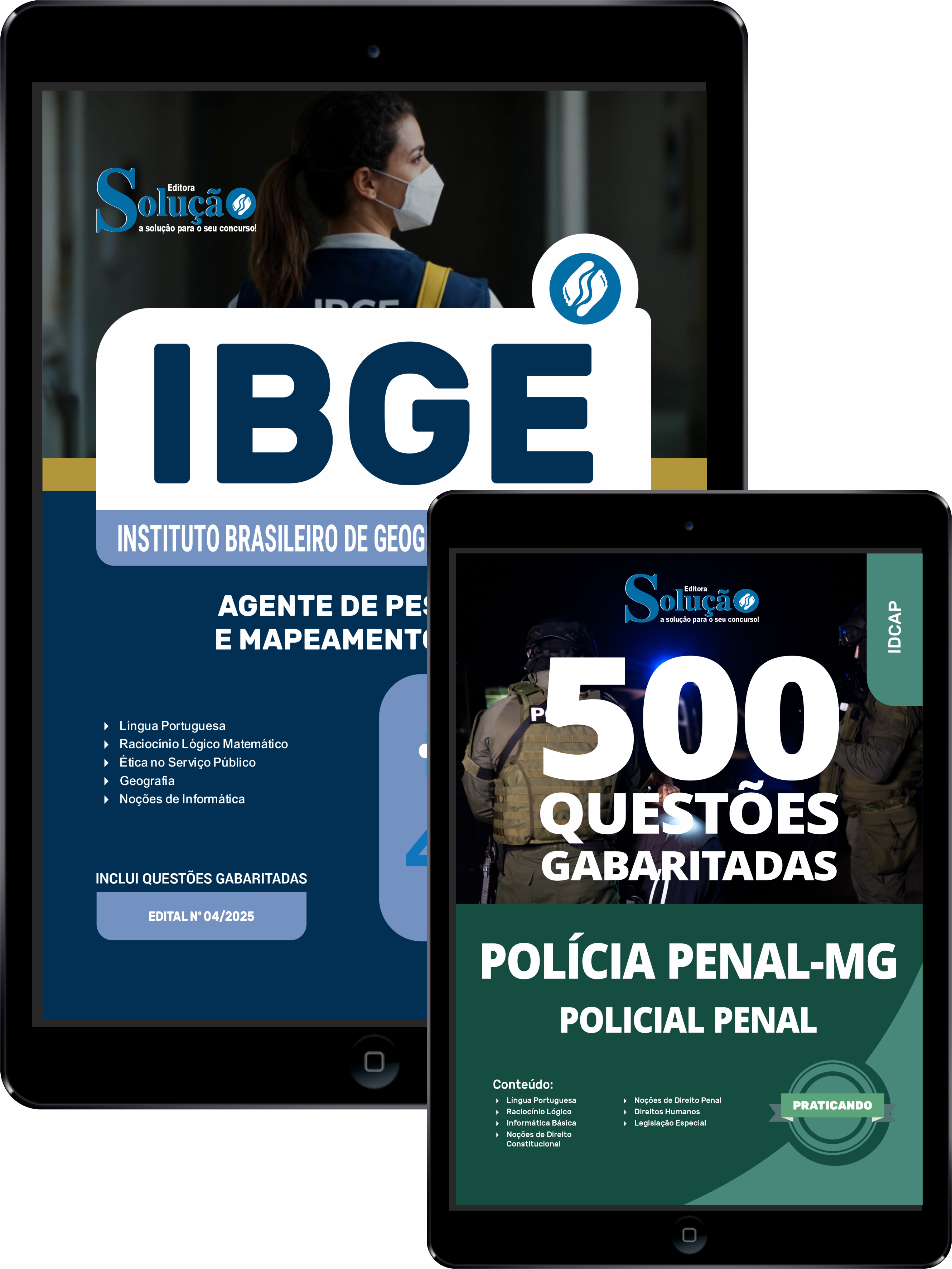 - Apostila IBGE 2025 - Agente de Pesquisas e Mapeamento (APM): traz toda a teoria necessária de forma escrita e com exercícios; de acordo com o último edital e elaborado por nossa equipe de professores especializados em concursos.