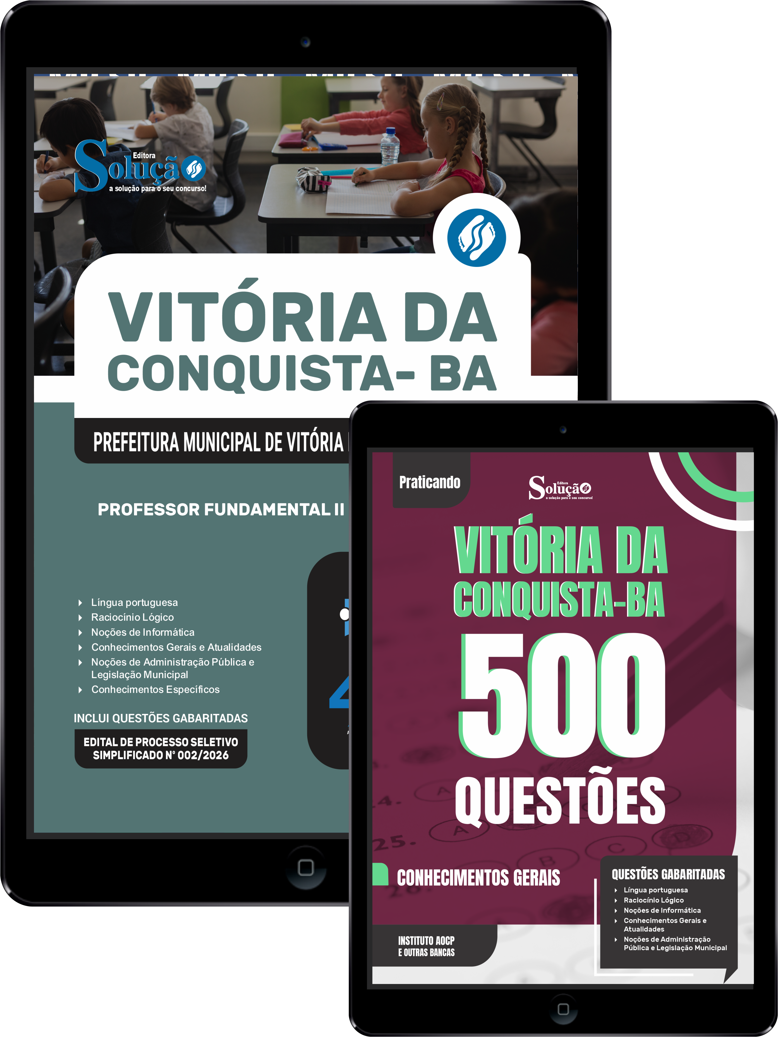 - Caderno de Questões Prefeitura de Vitória da Conquista - BA - Conhecimentos Gerais - 500 Questões Gabaritadas: traz questões cuidadosamente selecionadas pela nossa equipe editorial, de acordo com o edital mais recente do concurso.