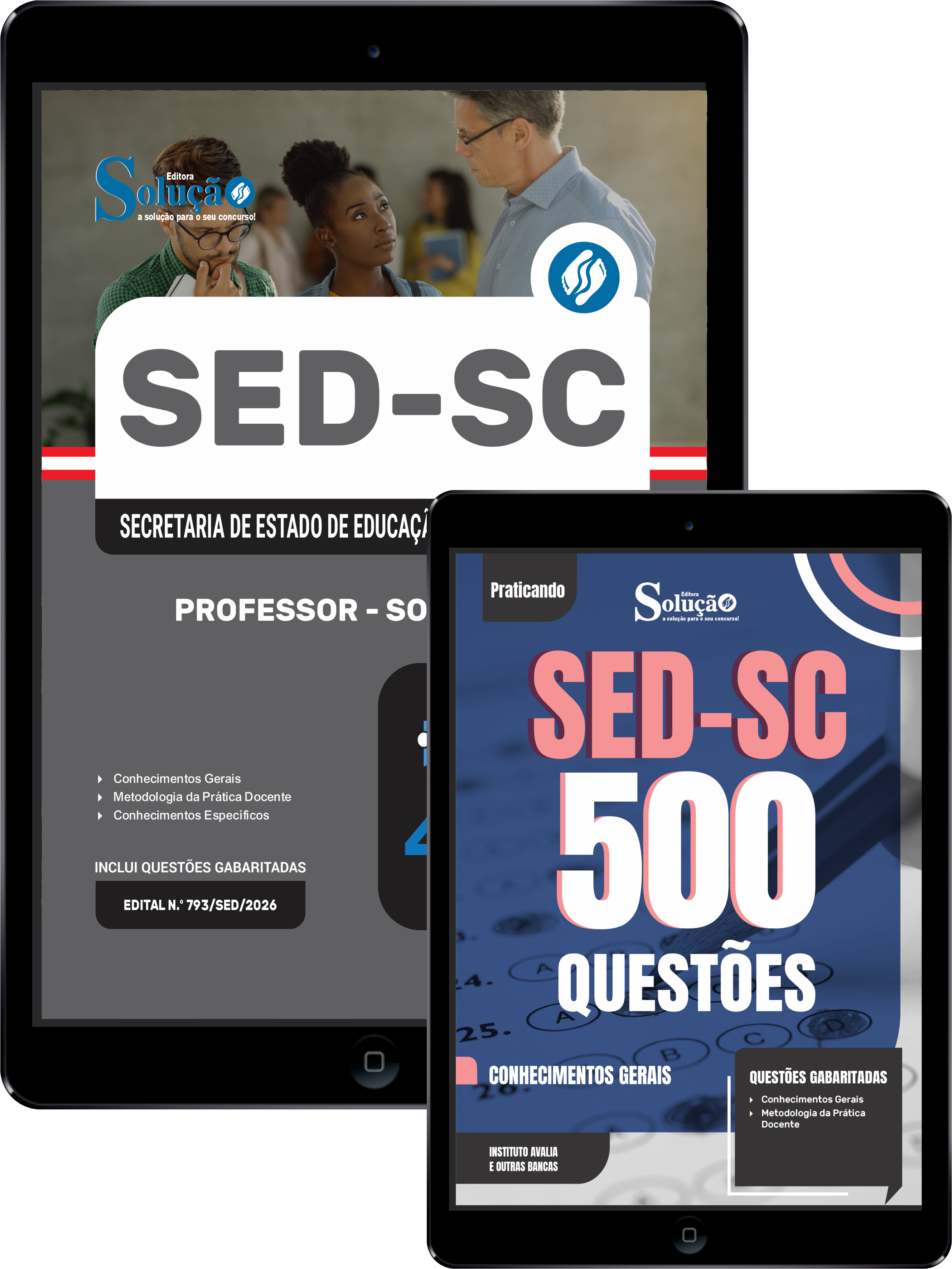 - Caderno de Questões SED-SC - Conhecimentos Gerais - 500 Questões Gabaritadas: traz questões cuidadosamente selecionadas pela nossa equipe editorial, de acordo com o edital mais recente do concurso.