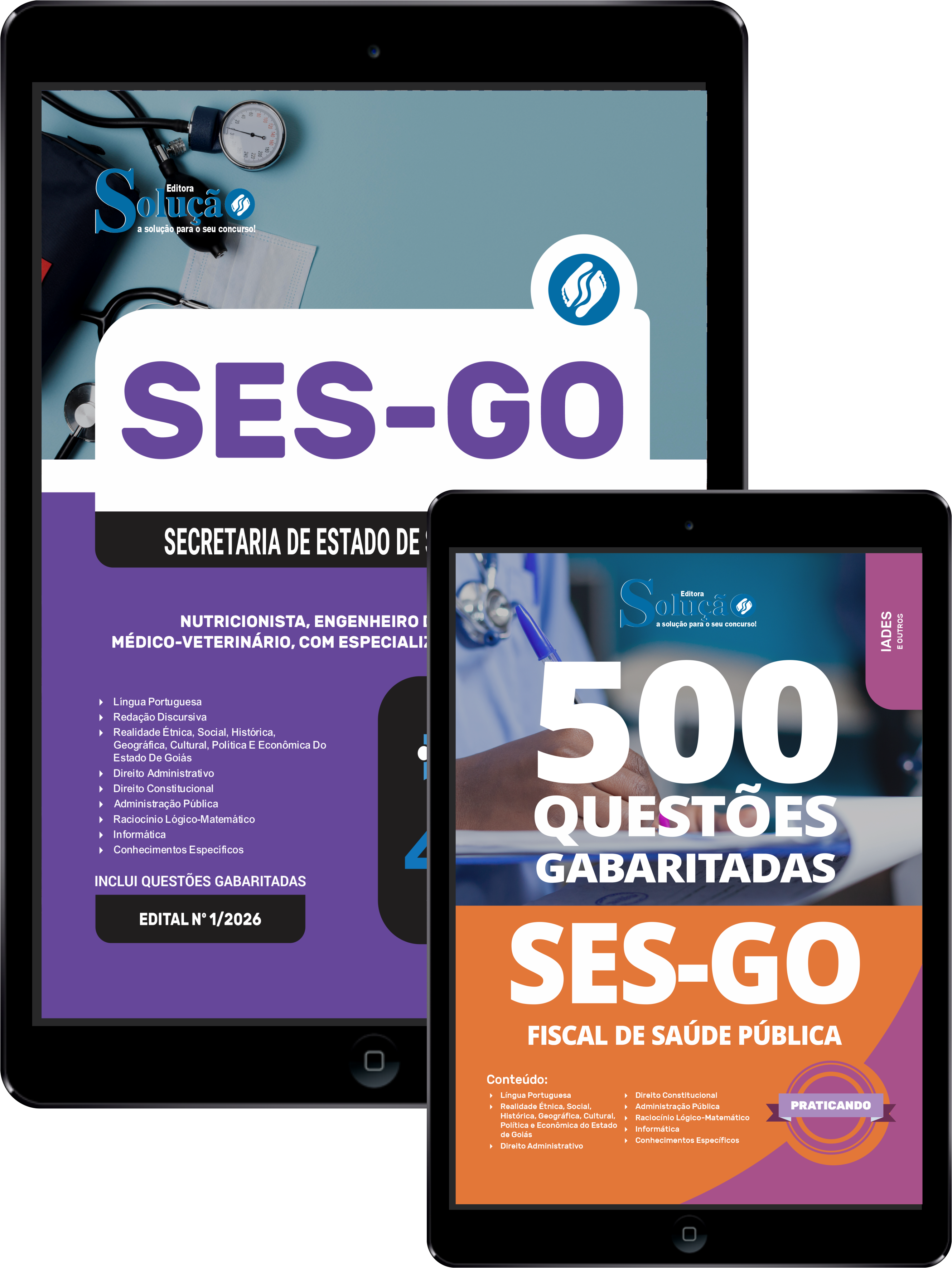 - Caderno de Questões SES-GO - Fiscal de Saúde Pública - 500 Questões Gabaritadas: traz questões cuidadosamente selecionadas pela nossa equipe editorial, de acordo com o edital mais recente do concurso.
