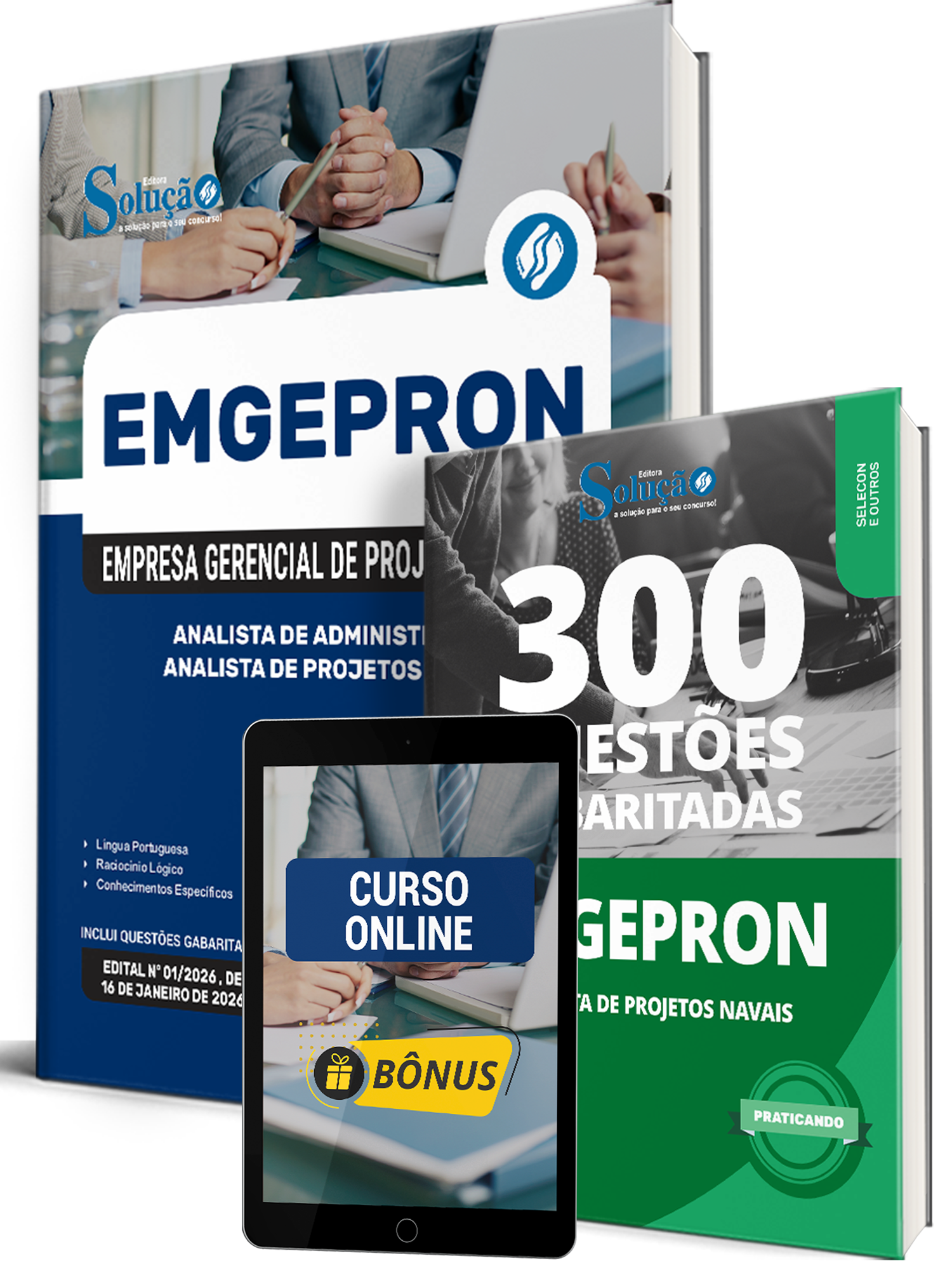 - Caderno de Questões EMGEPRON 2026 - Analista de Projetos Navais - 300 Questões Gabaritadas: traz questões cuidadosamente selecionadas pela nossa equipe editorial, de acordo com o edital mais recente do concurso.