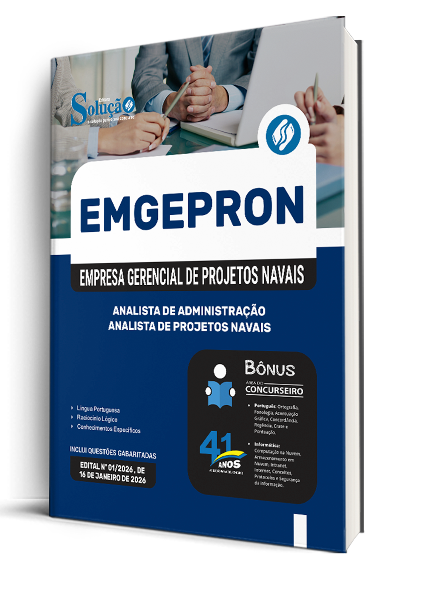 - Apostila EMGEPRON 2026 - Analista de Projetos Navais - Analista de Administração: traz toda a teoria necessária de forma escrita e com exercícios; de acordo com o último edital e elaborado por nossa equipe de professores especializados em concursos.