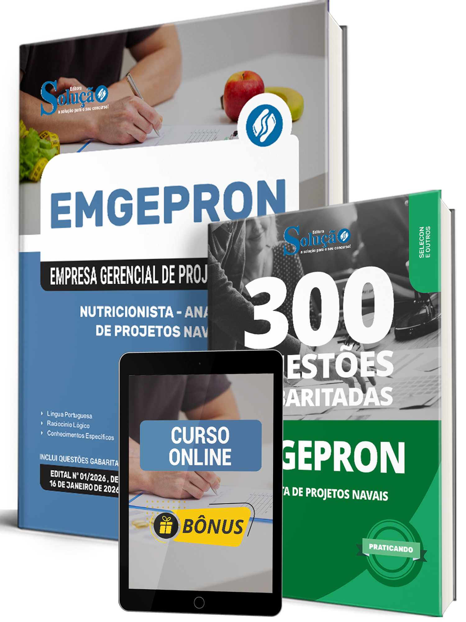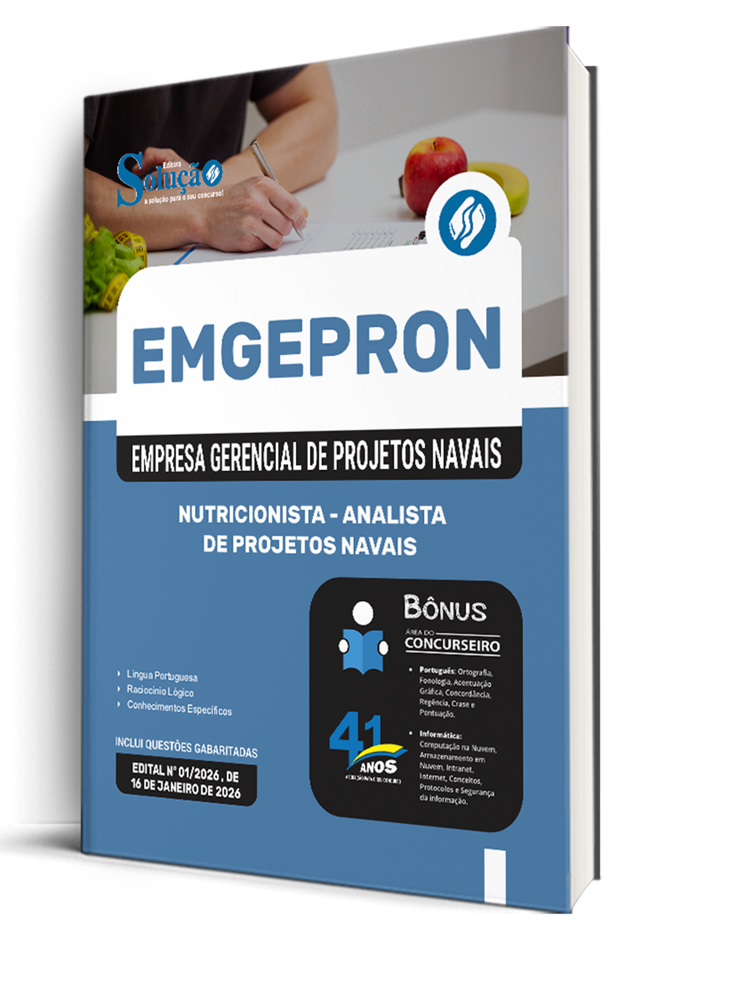 - Apostila EMGEPRON 2026 - Analista de Projetos Navais - Nutricionista: traz toda a teoria necessária de forma escrita e com exercícios; de acordo com o último edital e elaborado por nossa equipe de professores especializados em concursos.