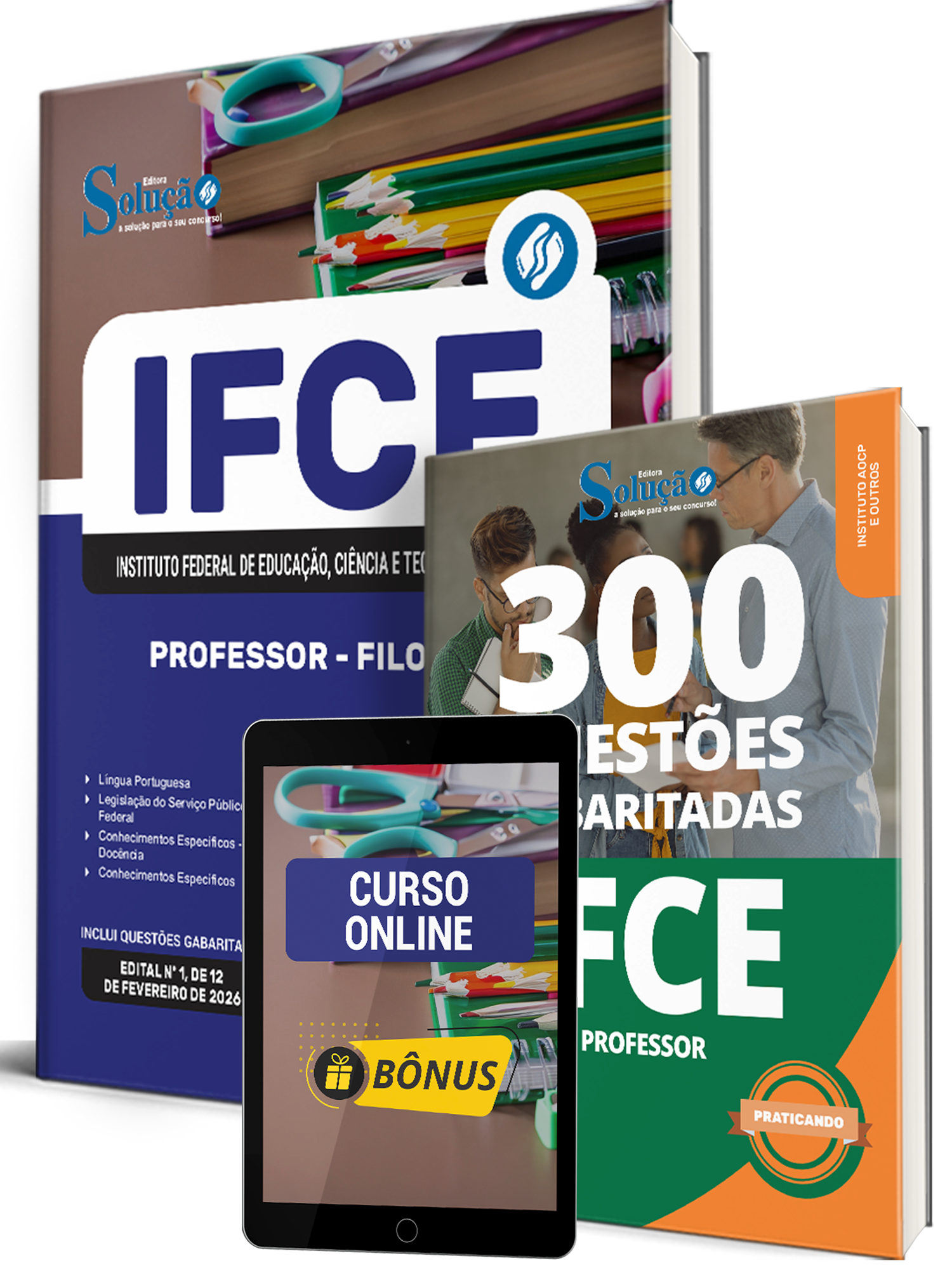 - Caderno de Questões IFCE - Professor - 300 Questões Gabaritadas: traz questões cuidadosamente selecionadas pela nossa equipe editorial, de acordo com o edital mais recente do concurso.