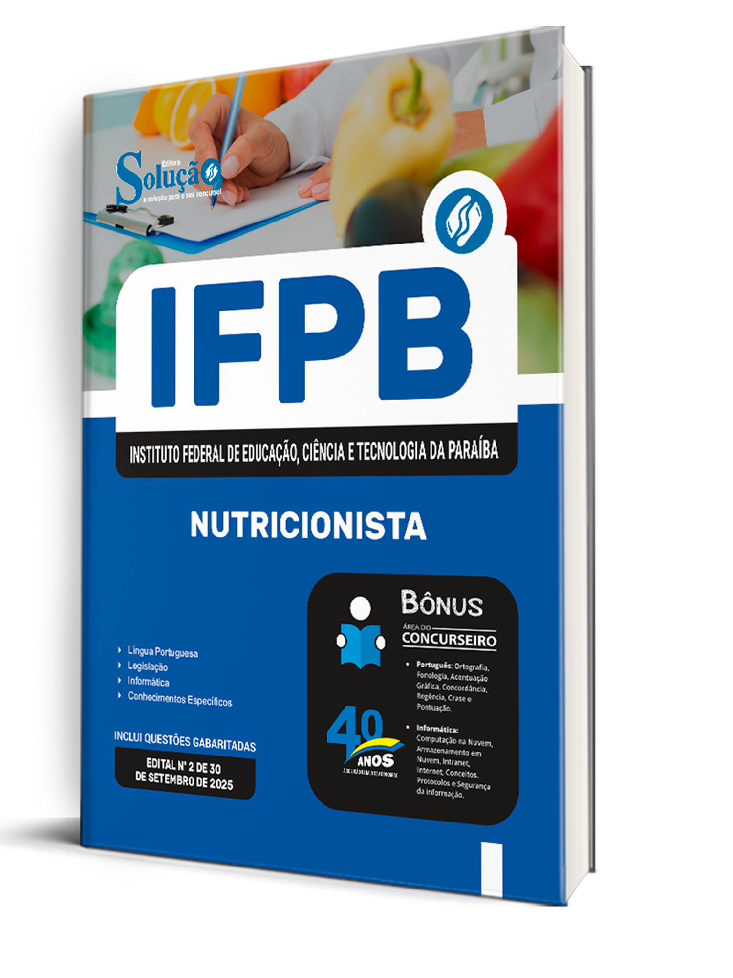 - Apostila IFPB 2025 - Nutricionista: traz toda a teoria necessária de forma escrita e com exercícios; de acordo com o último edital e elaborado por nossa equipe de professores especializados em concursos.