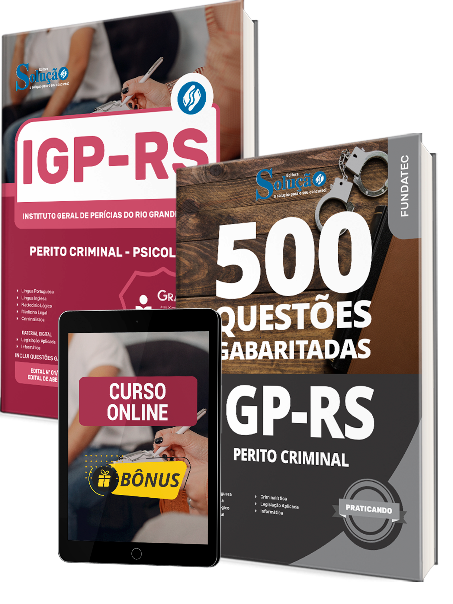 - Caderno de Questões IGP-RS - Perito Criminal - 500 Questões Gabaritadas: são questões cuidadosamente escolhidas pela nossa equipe editorial, com ampla experiência em concursos públicos. Estruturado de forma a facilitar o aprendizado e potencializar seus estudos!