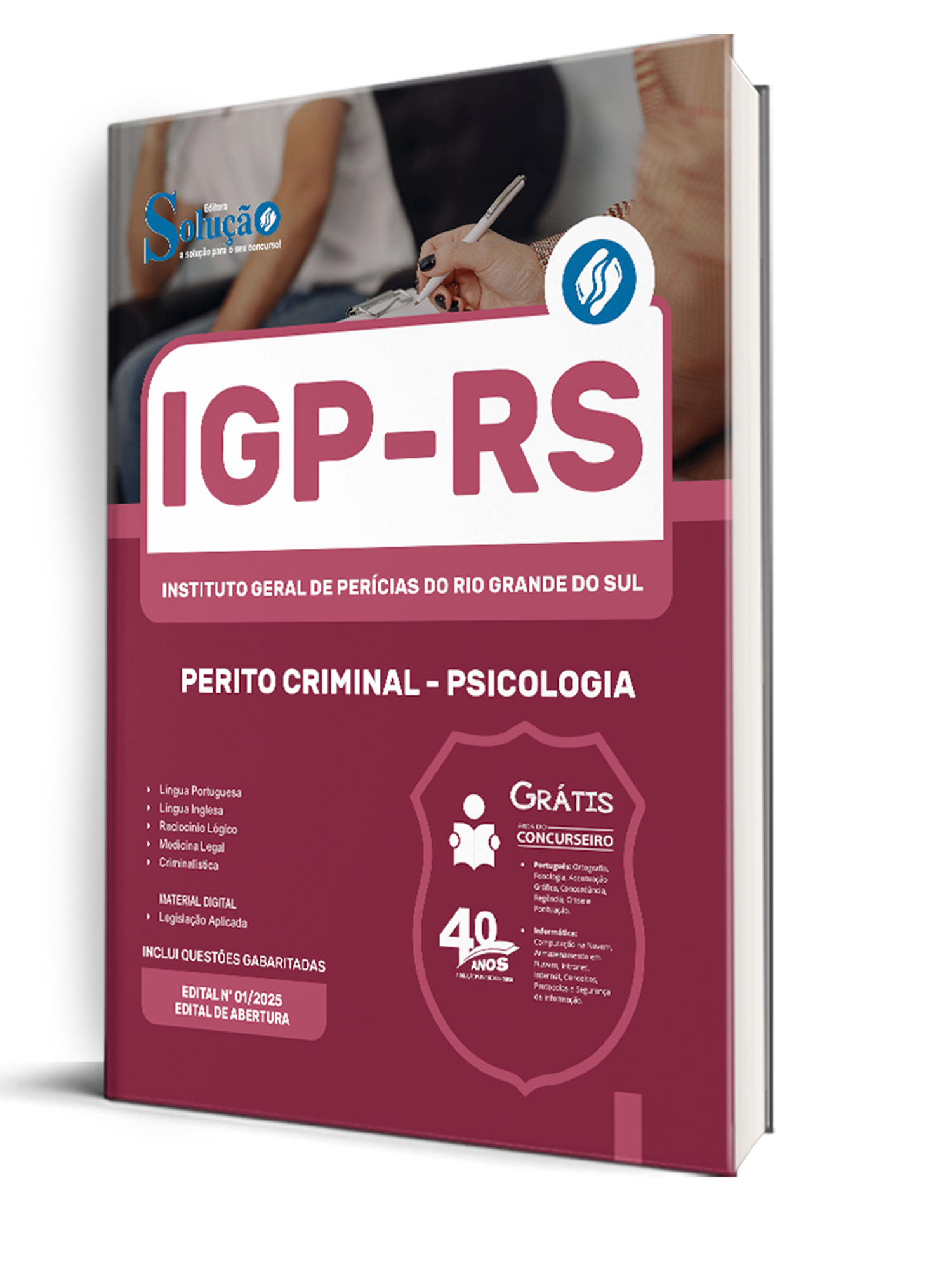 - Apostila IGP-RS 2025 - Perito Criminal - Psicologia: traz toda a teoria necessária de forma escrita e com exercícios; de acordo com o último edital e elaborado por nossa equipe de professores especializados em concursos.