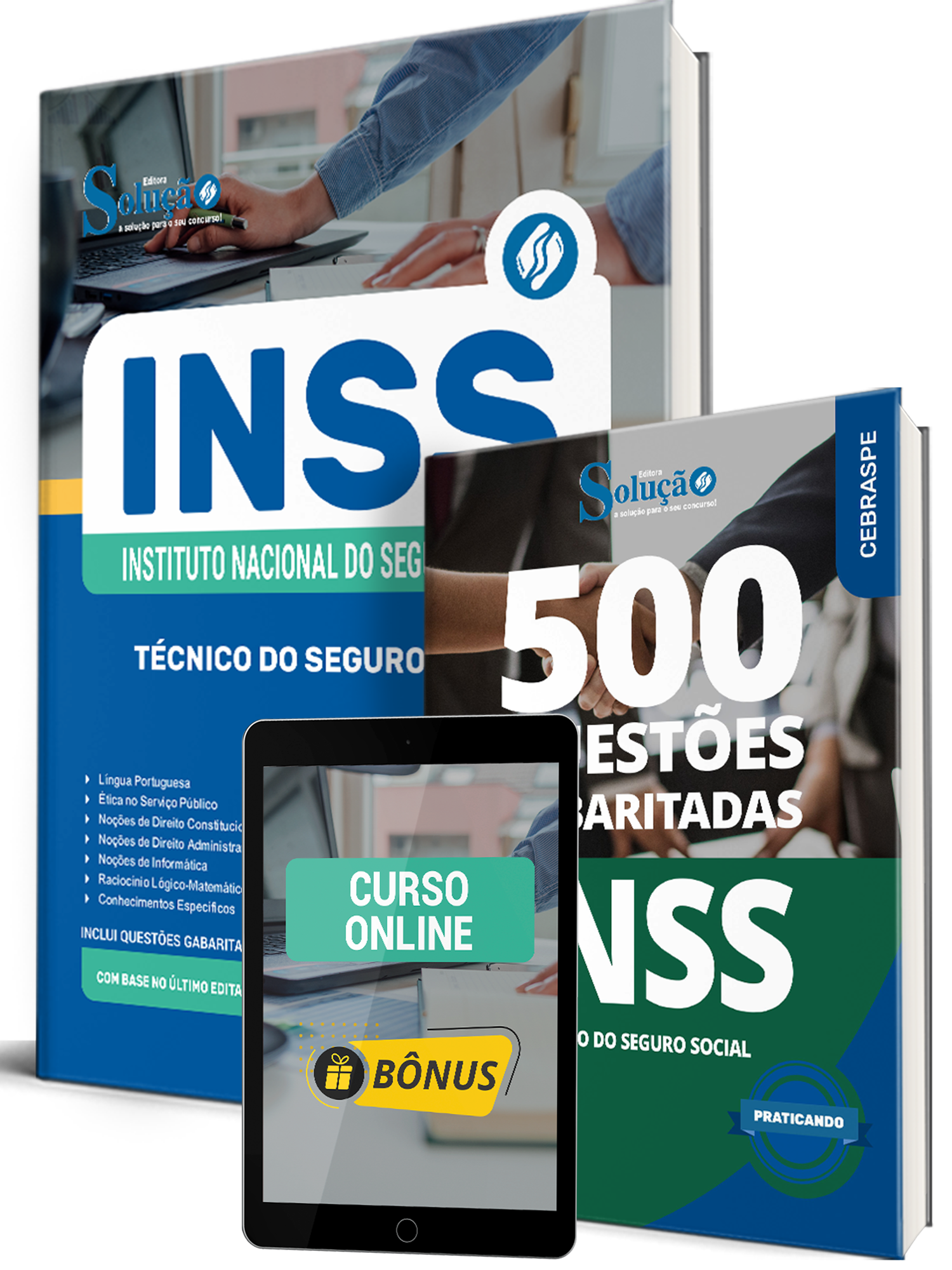 - Caderno de Questões INSS - Técnico do Seguro Social - 500 Questões Gabaritadas: traz questões cuidadosamente selecionadas pela nossa equipe editorial, de acordo com o edital mais recente do concurso.