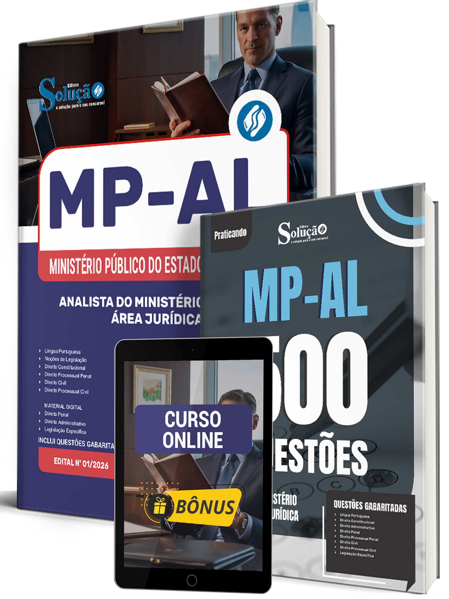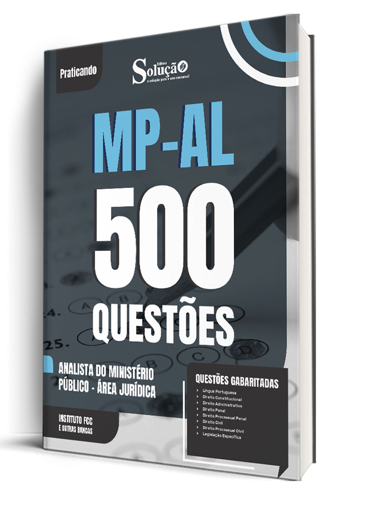 - Caderno de Questões MP-AL - Analista do Ministério Público - Área Jurídica - 500 Questões Gabaritadas: traz questões cuidadosamente selecionadas pela nossa equipe editorial, de acordo com o edital mais recente do concurso.