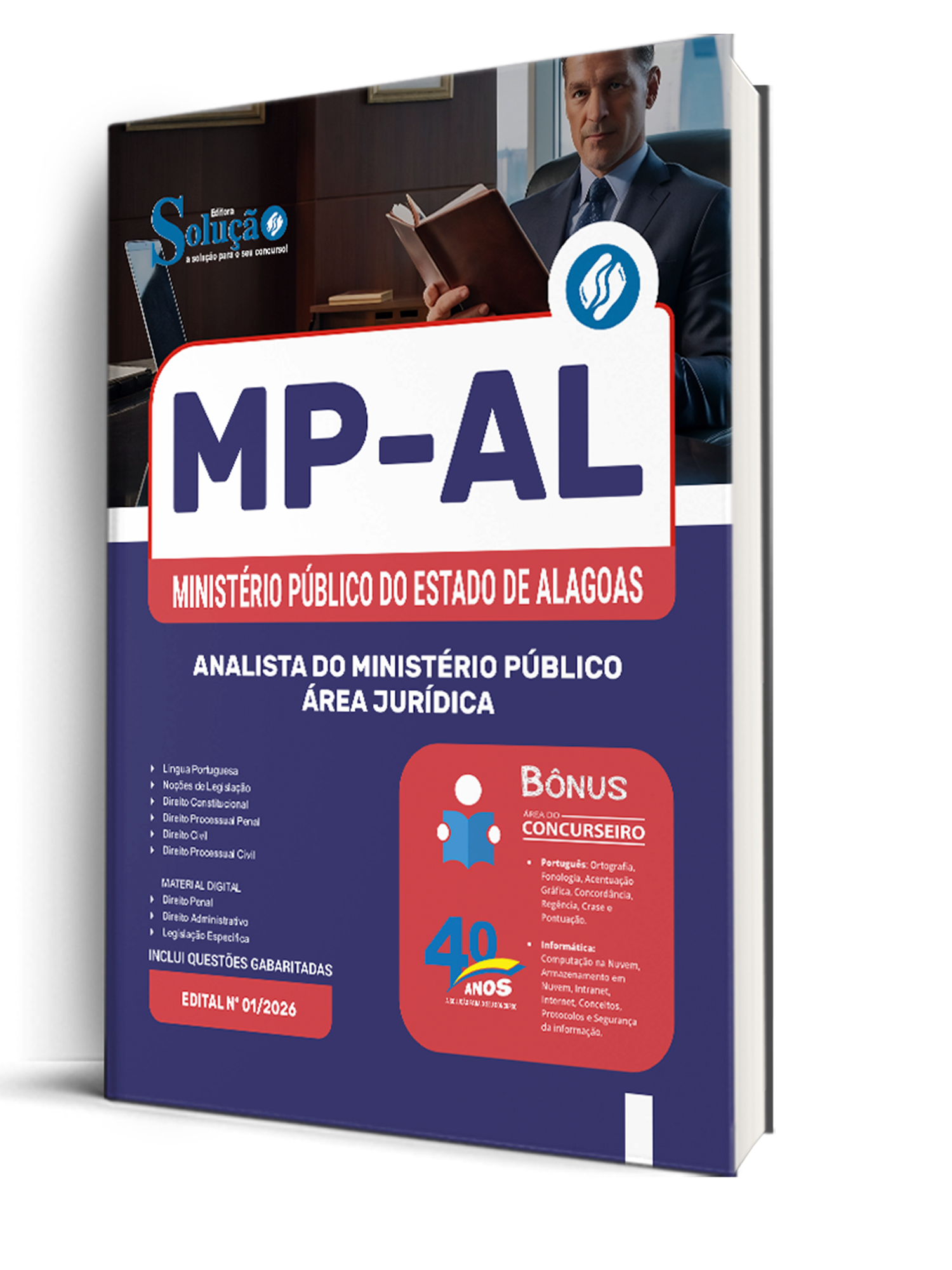 - Apostila MP-AL 2026 - Analista do Ministério Público - Área Jurídica: traz toda a teoria necessária de forma escrita e com exercícios; de acordo com o último edital e elaborado por nossa equipe de professores especializados em concursos.