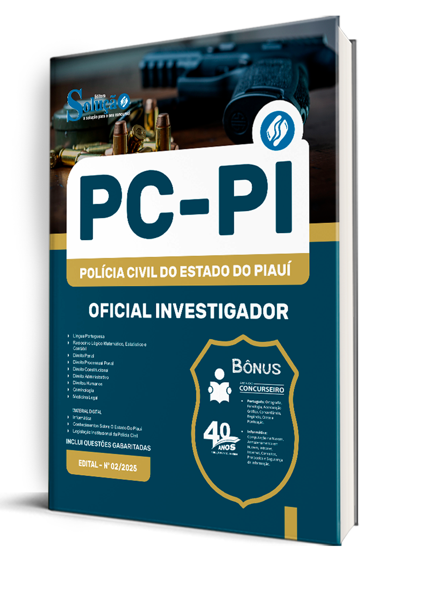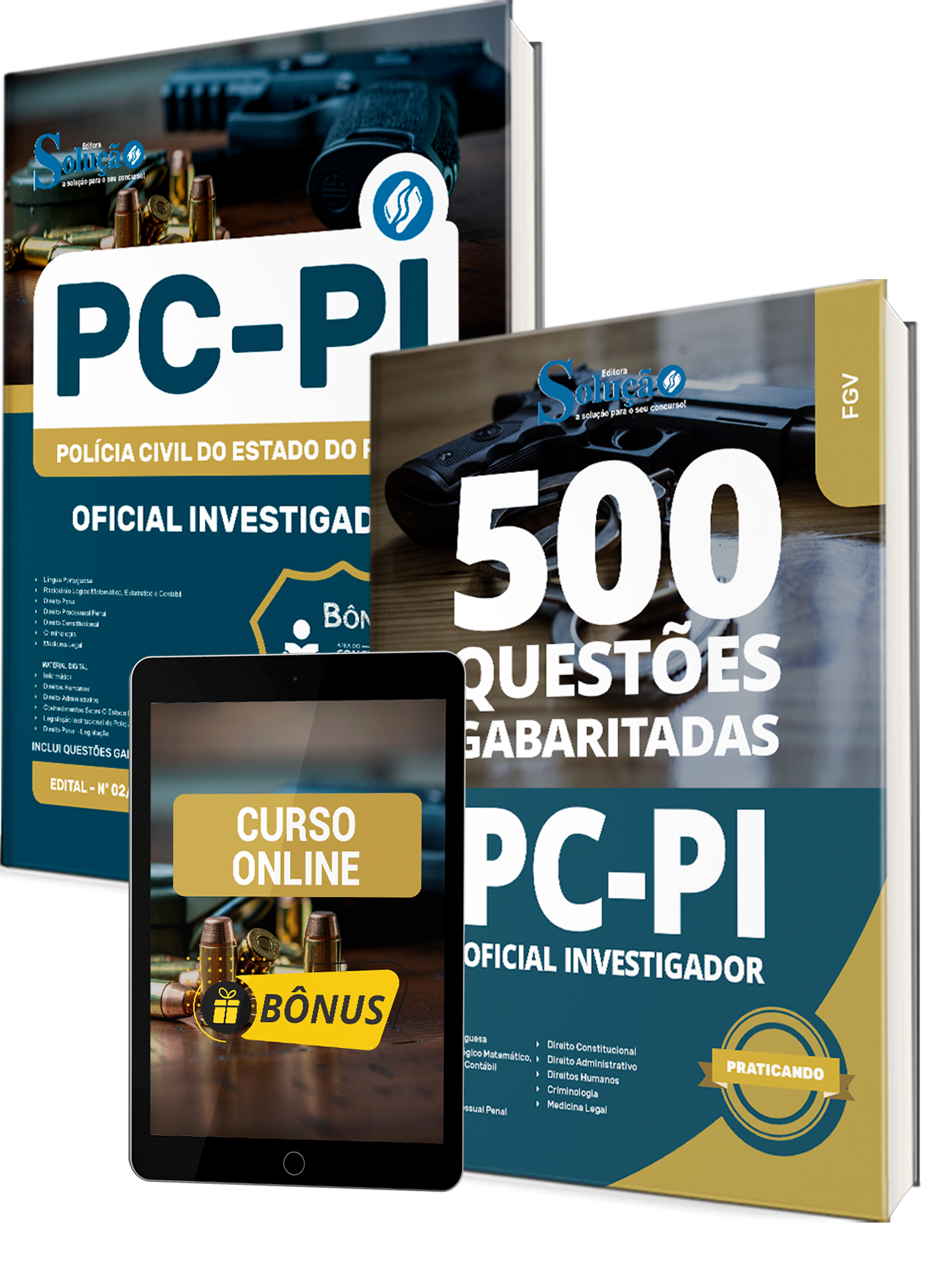 - Apostila PC-PI 2025 - Oficial Investigador: traz toda a teoria necessária de forma escrita e com exercícios; de acordo com o último edital e elaborado por nossa equipe de professores especializados em concursos.