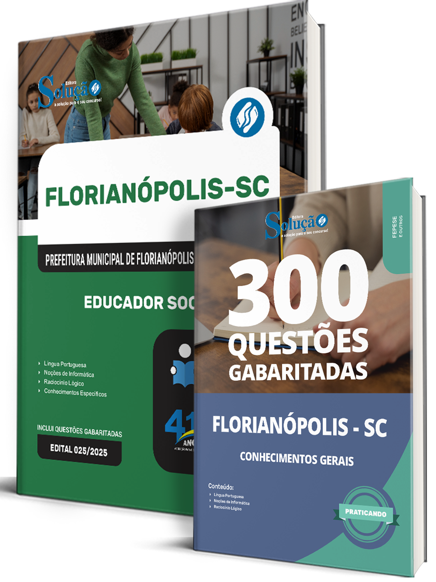 - Apostila Prefeitura de Florianópolis - SC 2026 - Educador Social: traz toda a teoria necessária de forma escrita e com exercícios; de acordo com o último edital e elaborado por nossa equipe de professores especializados em concursos.